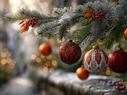 Grafika, Boże Narodzenie, Choinka, Święta, Bombki, AI
