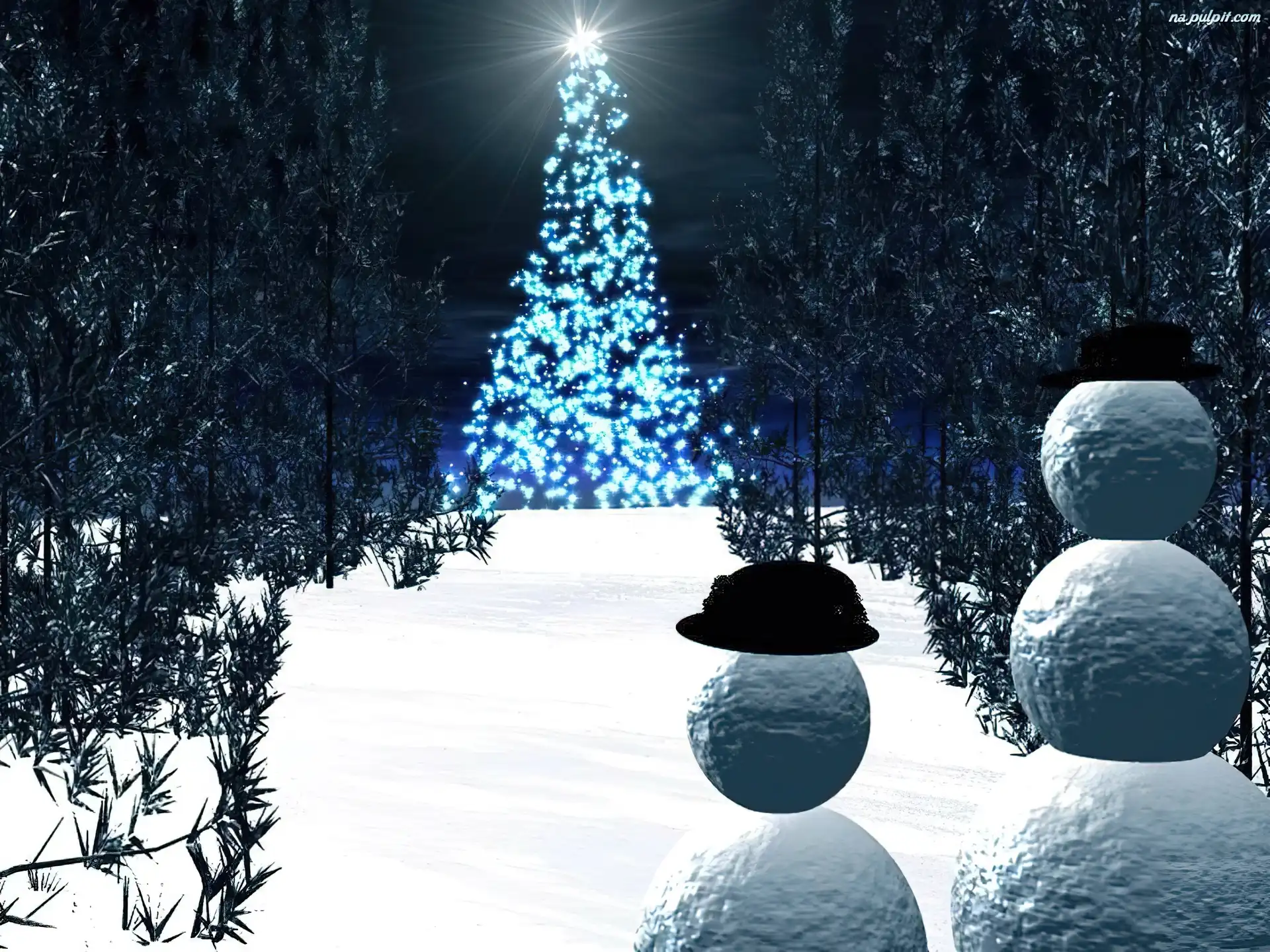 choinka, bałwanek , Boże Narodzenie, zima Na Pulpit