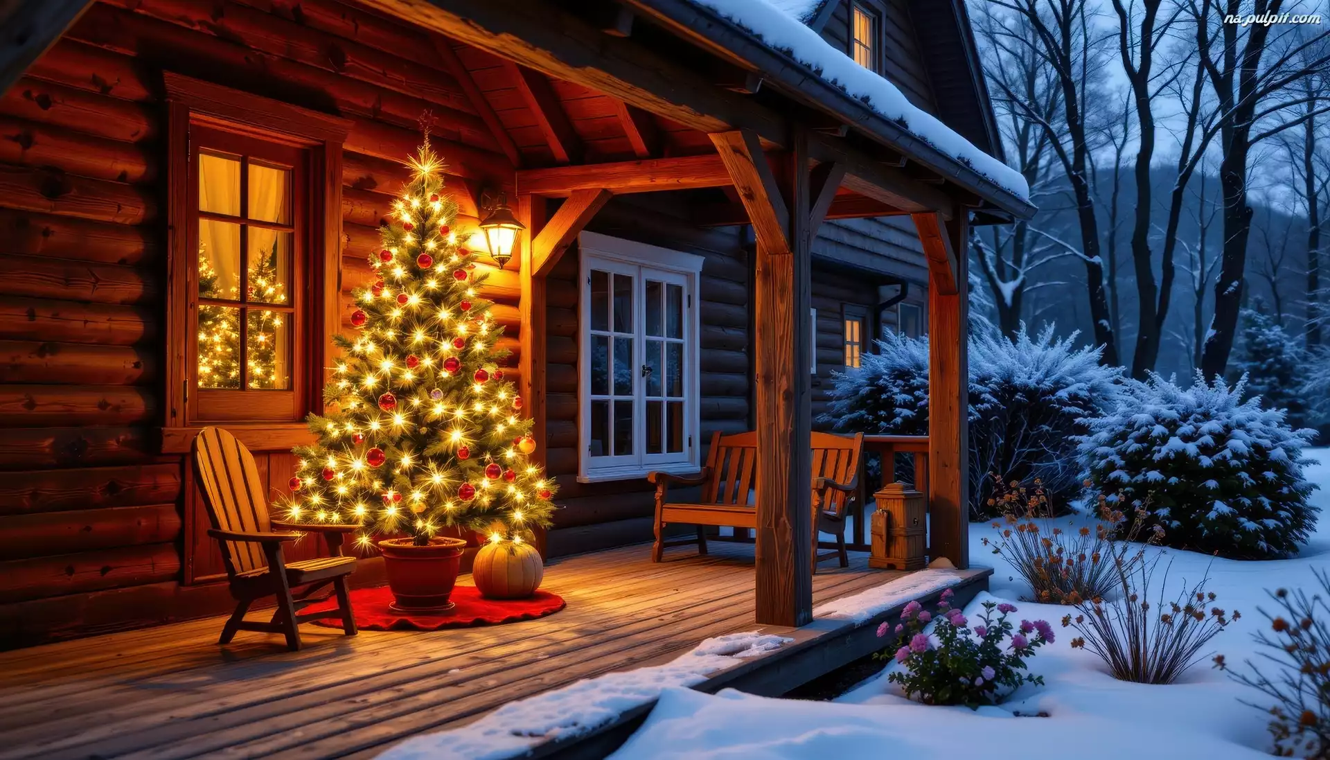 Taras, Boże Narodzenie, Choinka, Dom, Zima, Ogród Na Pulpit