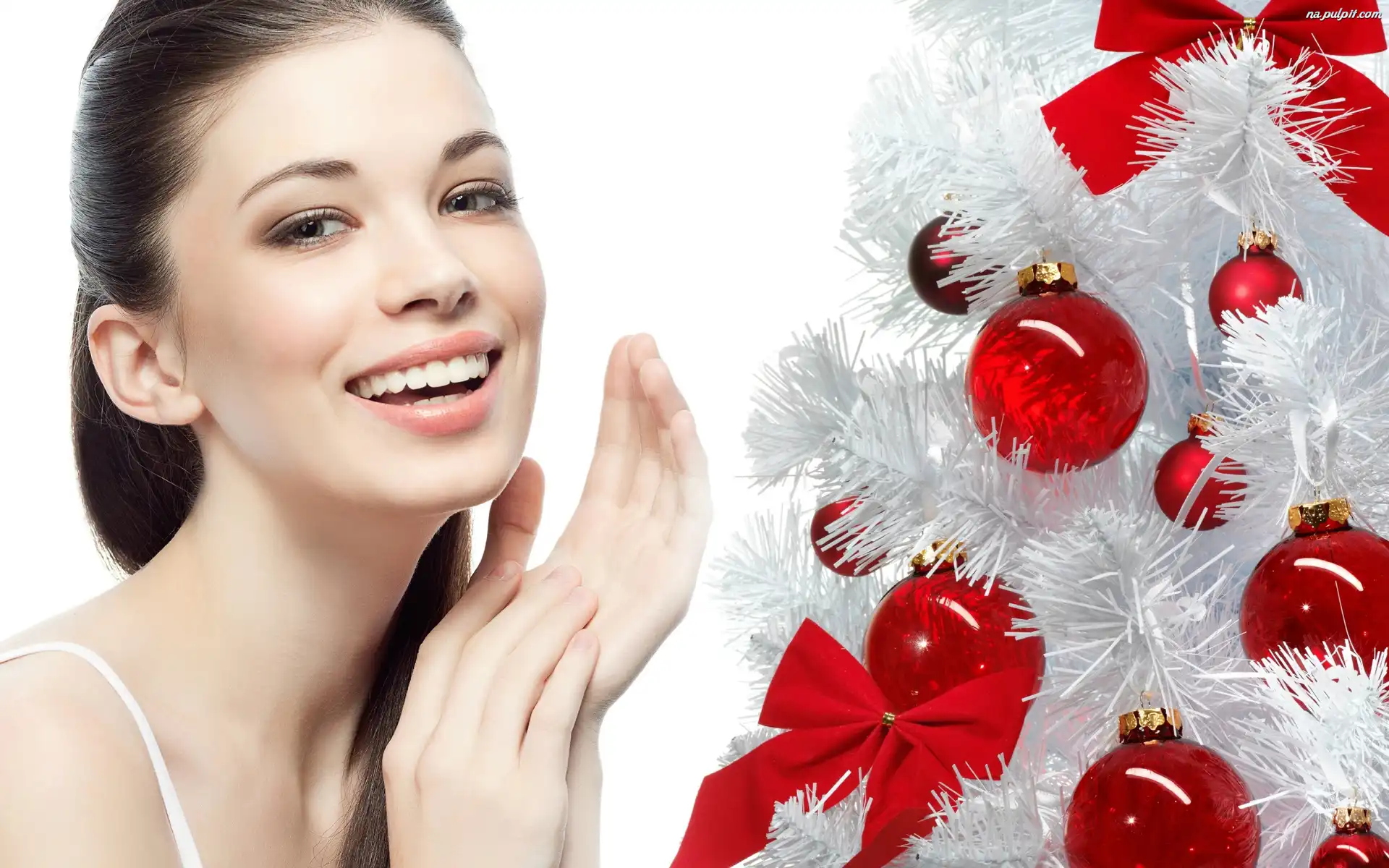 Choinka, Makijaż, Modelka, Uśmiechnięta, Biała Na Pulpit