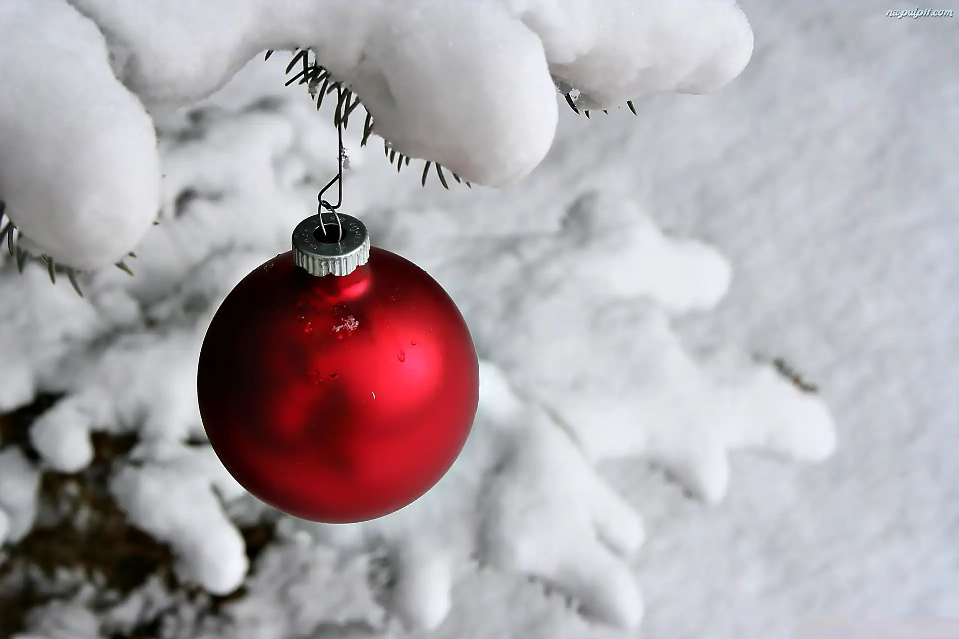 Choinka, Åšnieg, Zima, Bombka