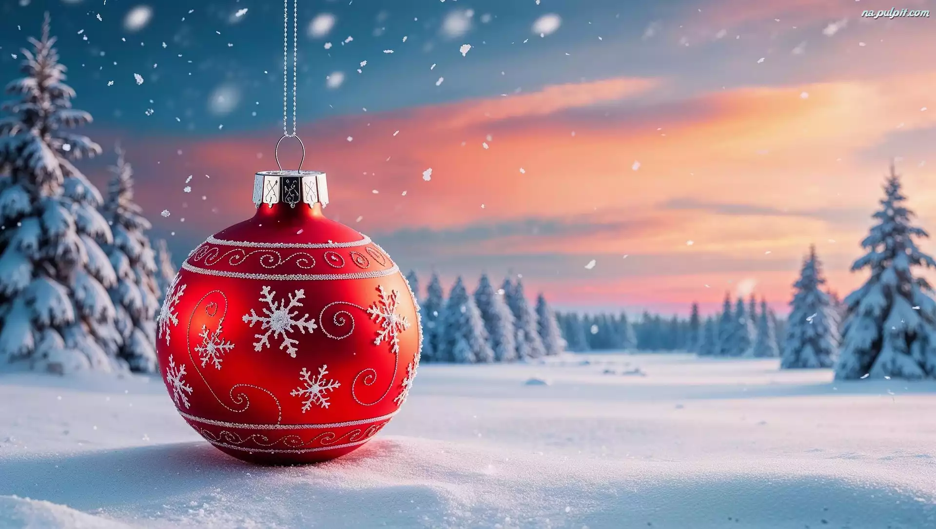Bombka, Boże Narodzenie, Choinki, Zima, Czerwona Na Pulpit