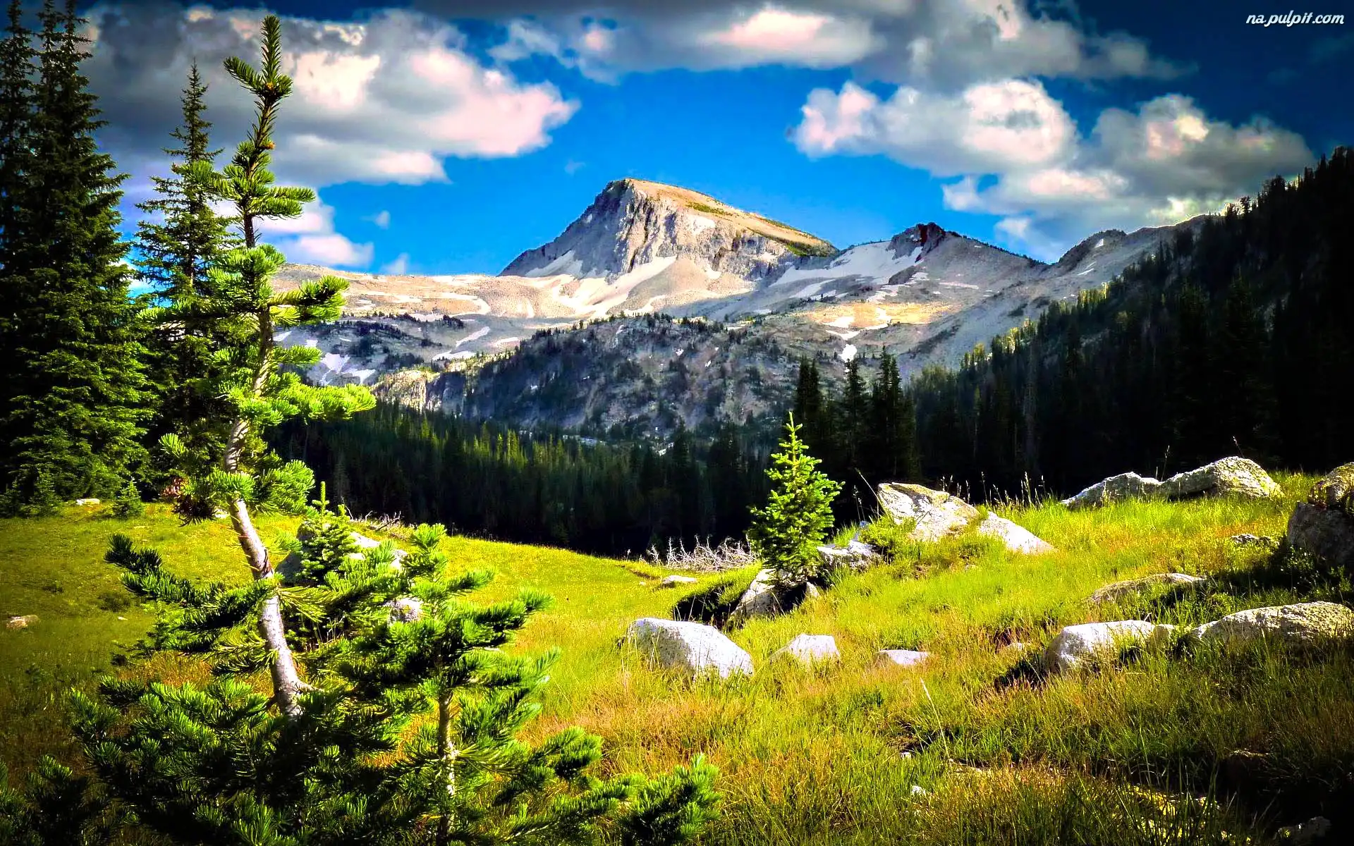 Choinki, Chmury, Góry, Trawa Na Pulpit