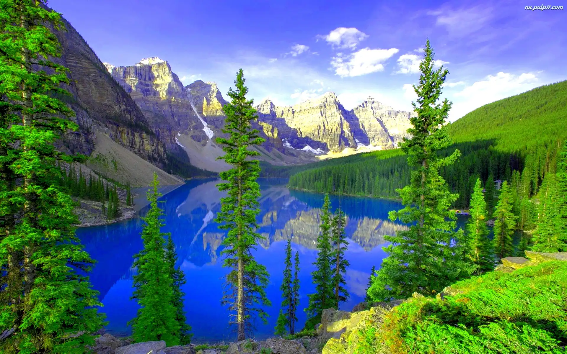 Choinki, Jezioro, Góry, Chmury Na Pulpit