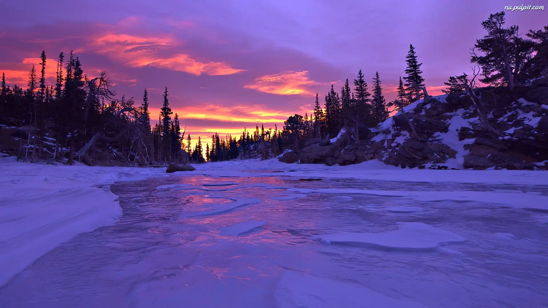 Choinki, Słońca, Zachód, Jezioro Na Pulpit