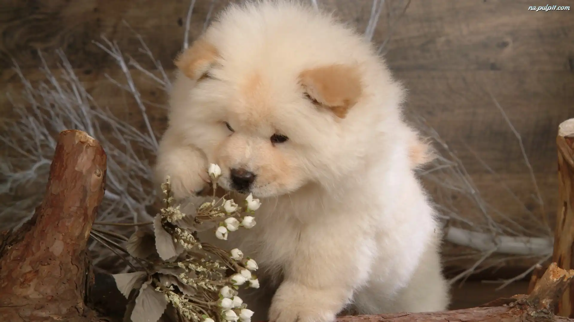 Chow, Szczeniaczek, Biały, Mały, Chow Na Pulpit
