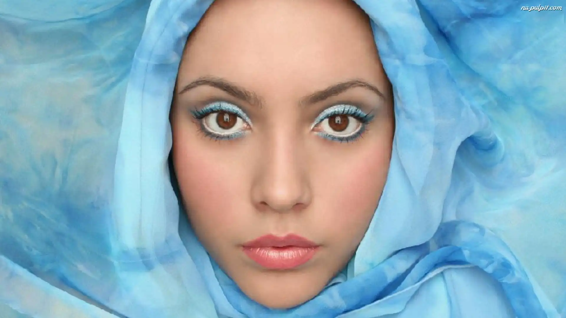 Chusta, Makijaż, Dziewczyna, Błękitna Na Pulpit