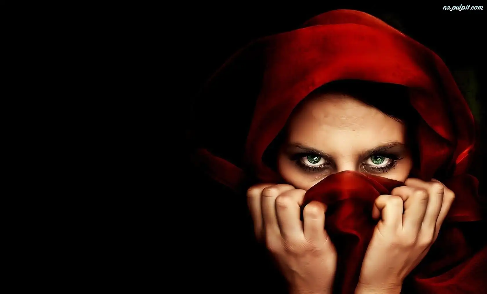 Chusta, Oczy, Kobieta, Czerwona Na Pulpit
