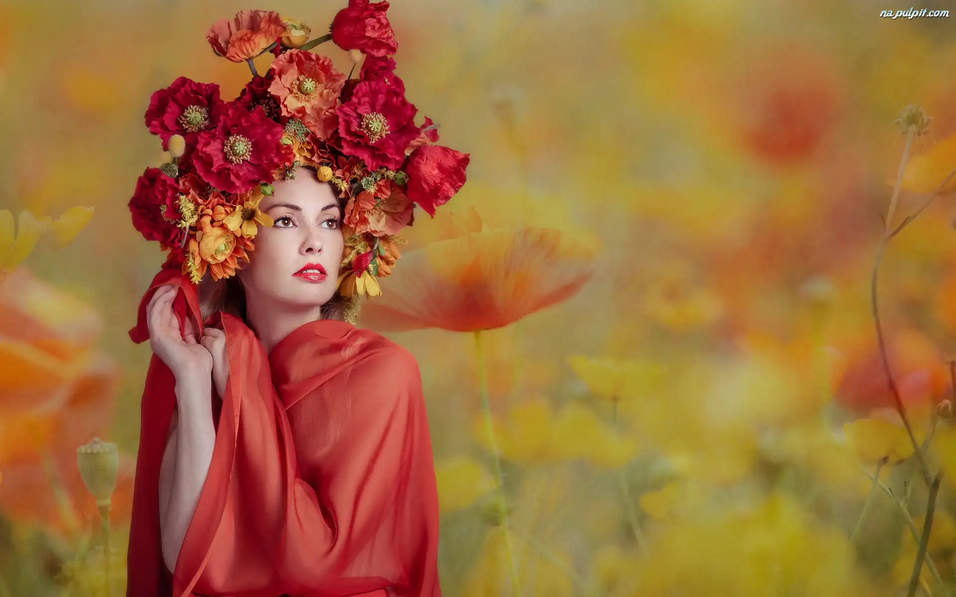 Chusta, Wianek, Kobieta, Czerwona Na Pulpit