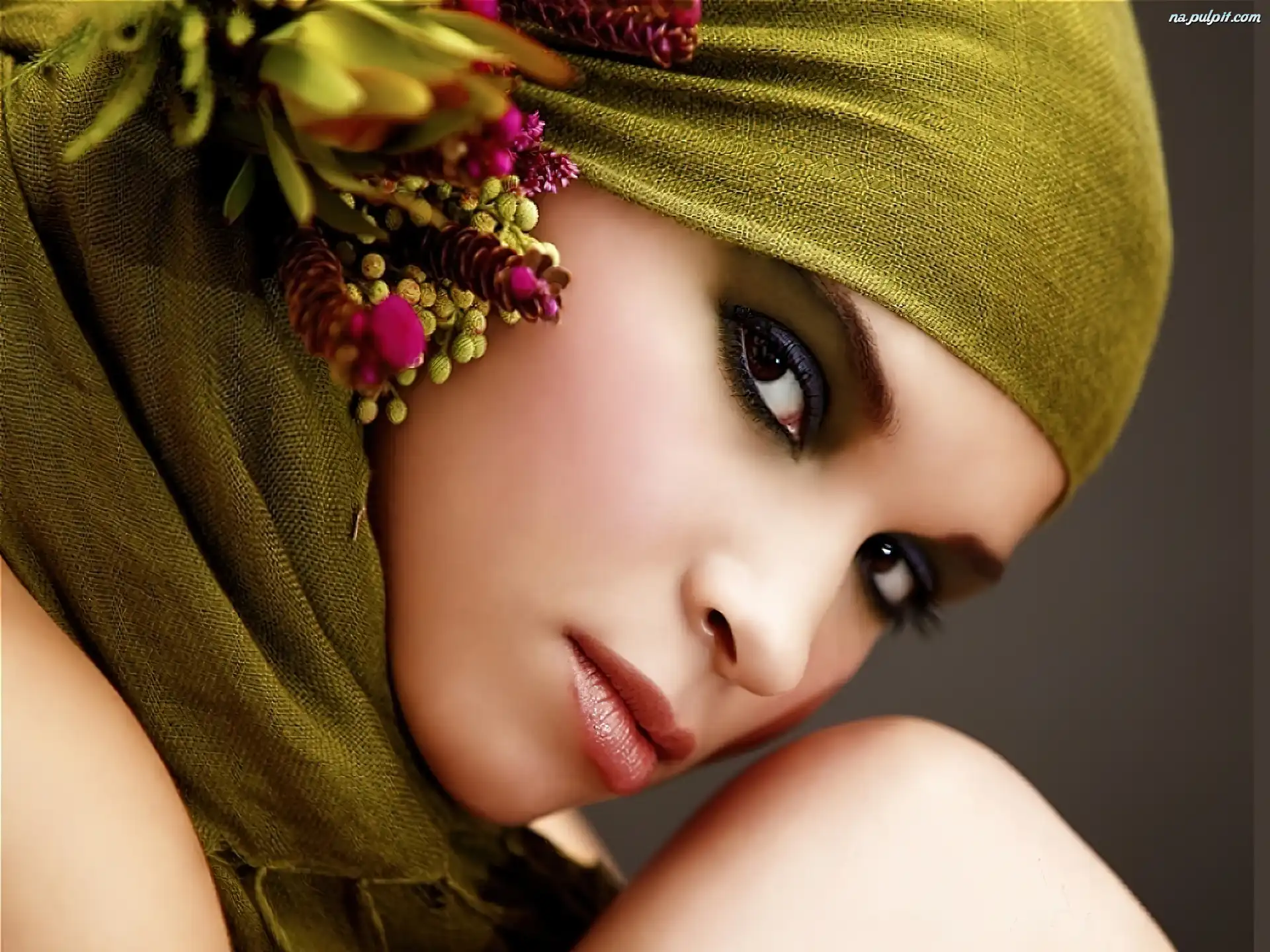Chustka, Makijaż, Kobieta, Zielona Na Pulpit