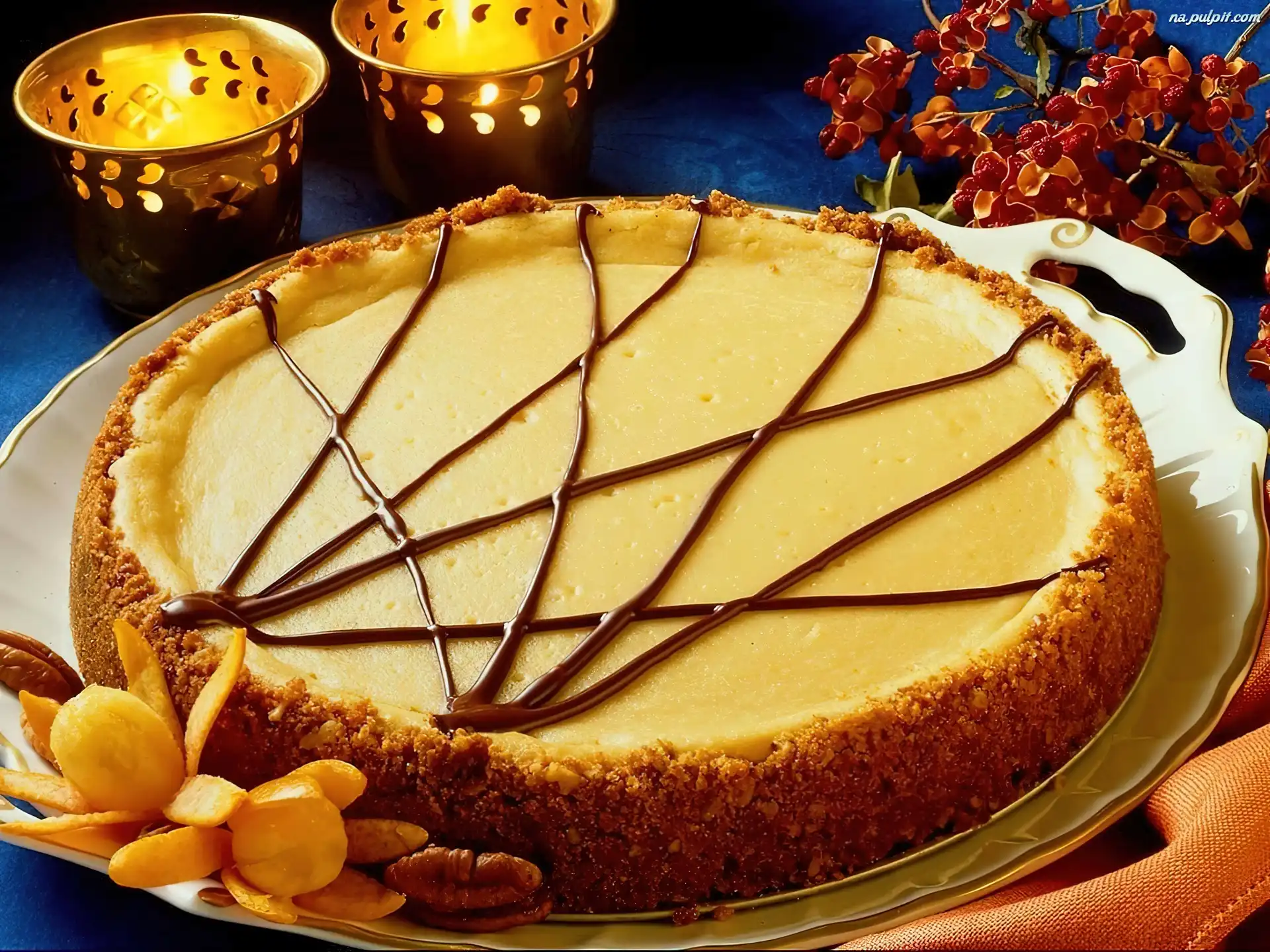 Świeczniki, Talerz, Ciasto, Kwiatki