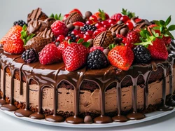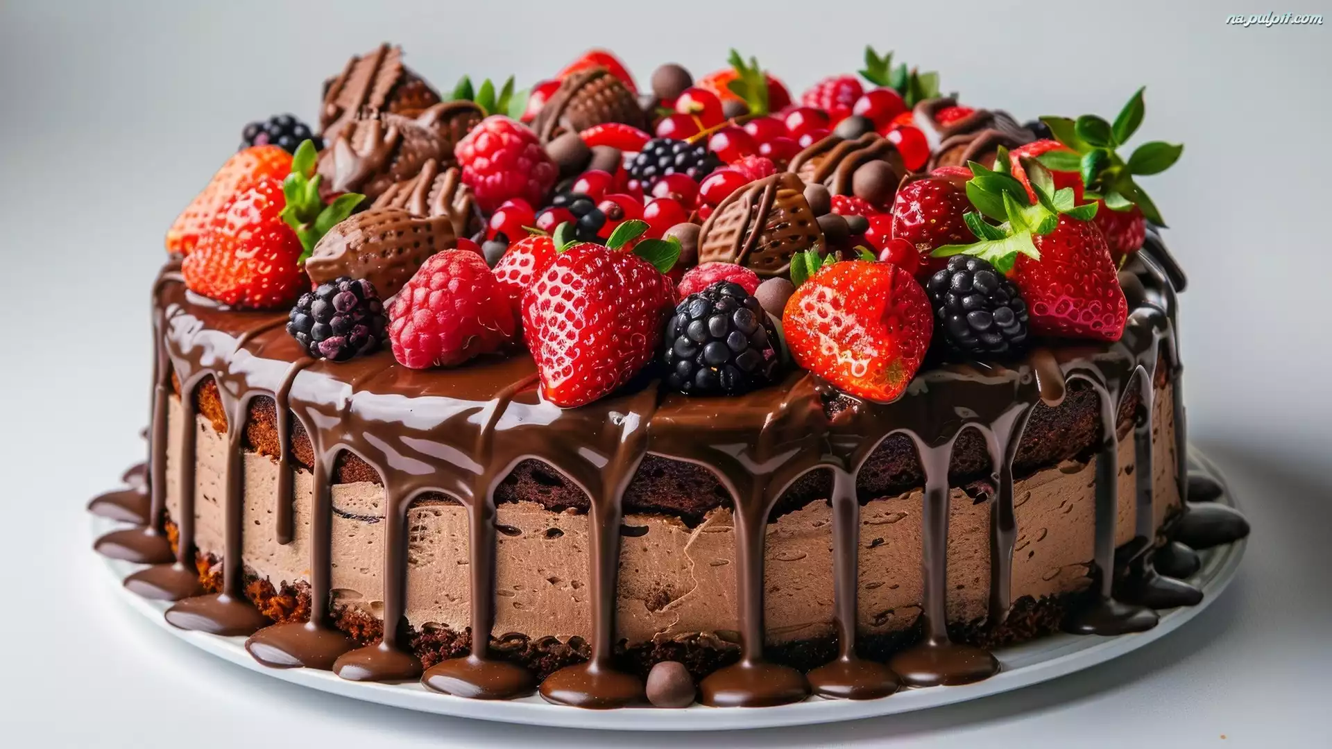 Talerz, Jeżyny, Truskawki, Ciasto, Czekoladowe, Owoce, Polewa Na Pulpit