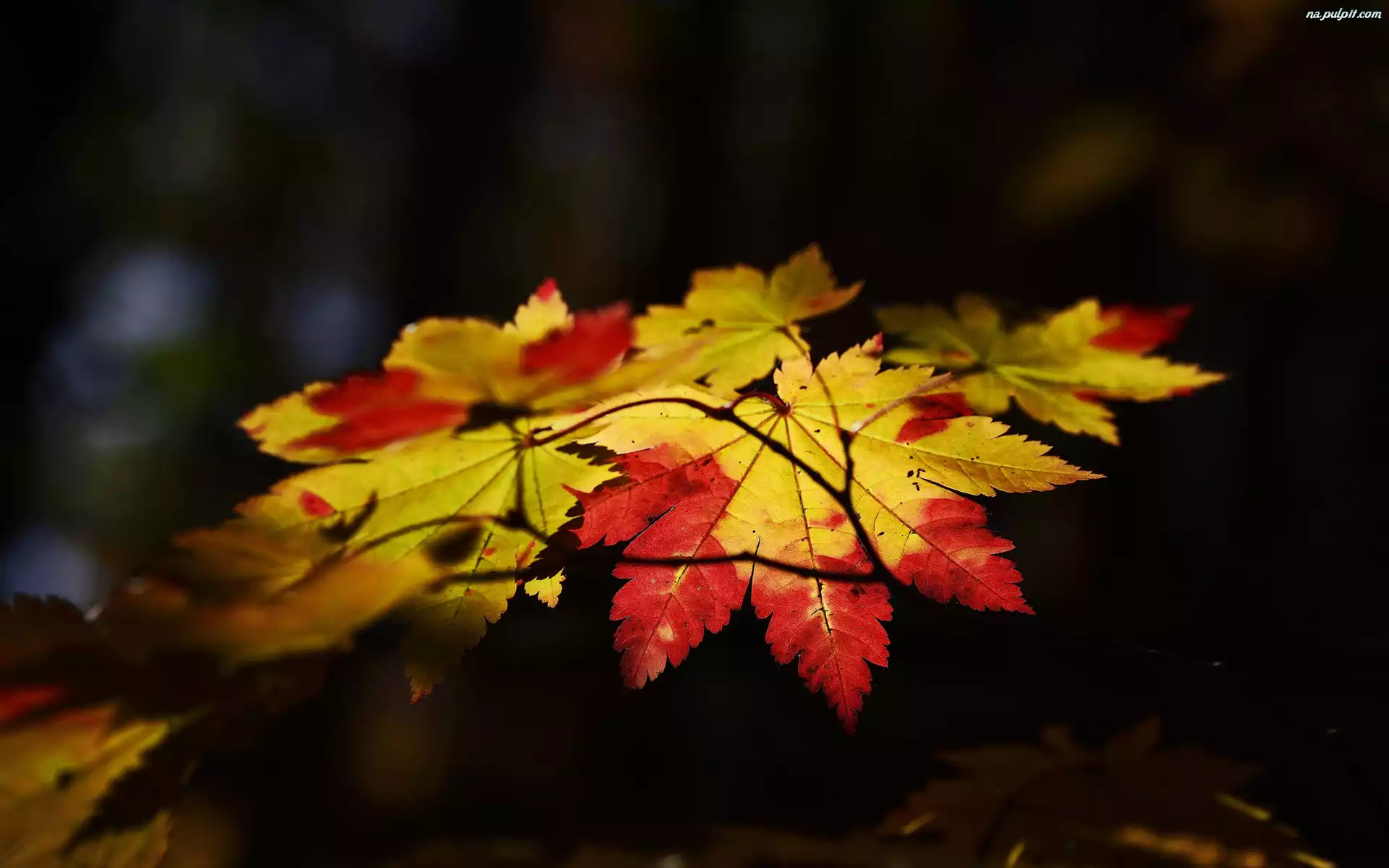 Ciemne tło, Gałąź, Liście, Jesienne, Klon Na Pulpit