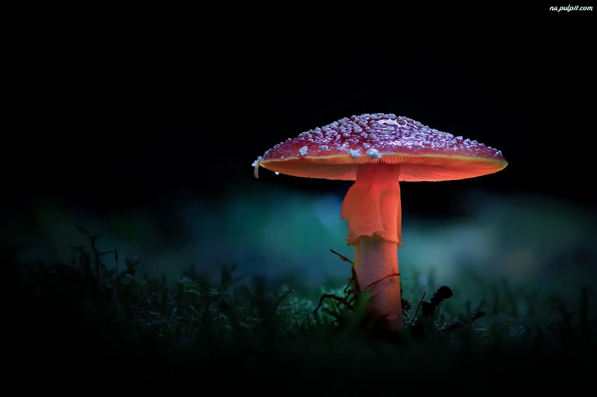 Ciemne Tło, Grzyb, Rozświetlony, Muchomor