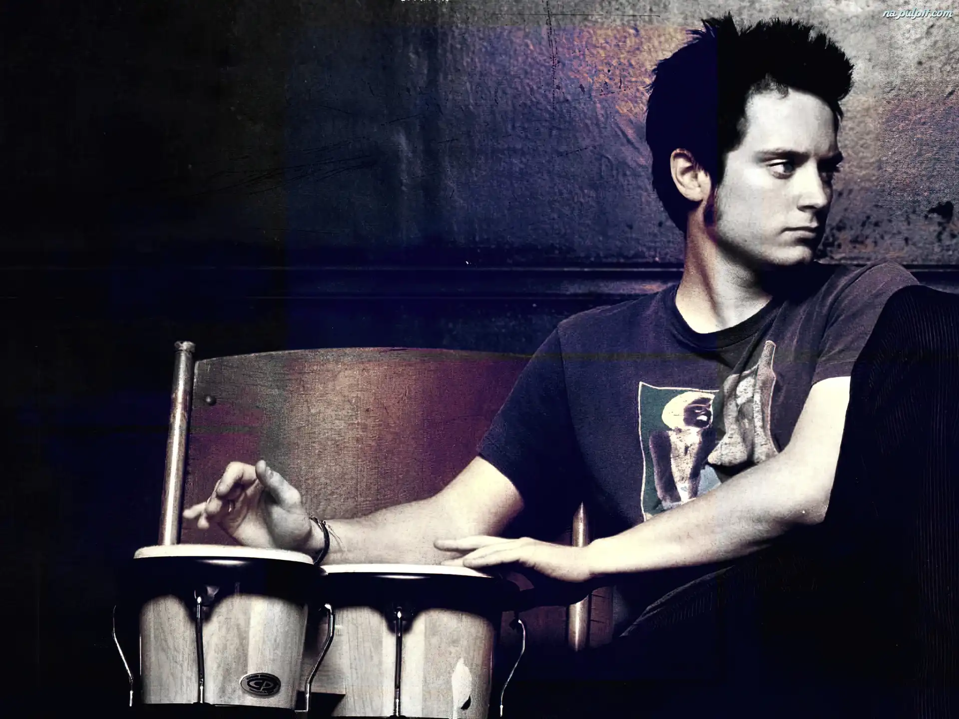 ciemne włosy, Elijah Wood, krzesło