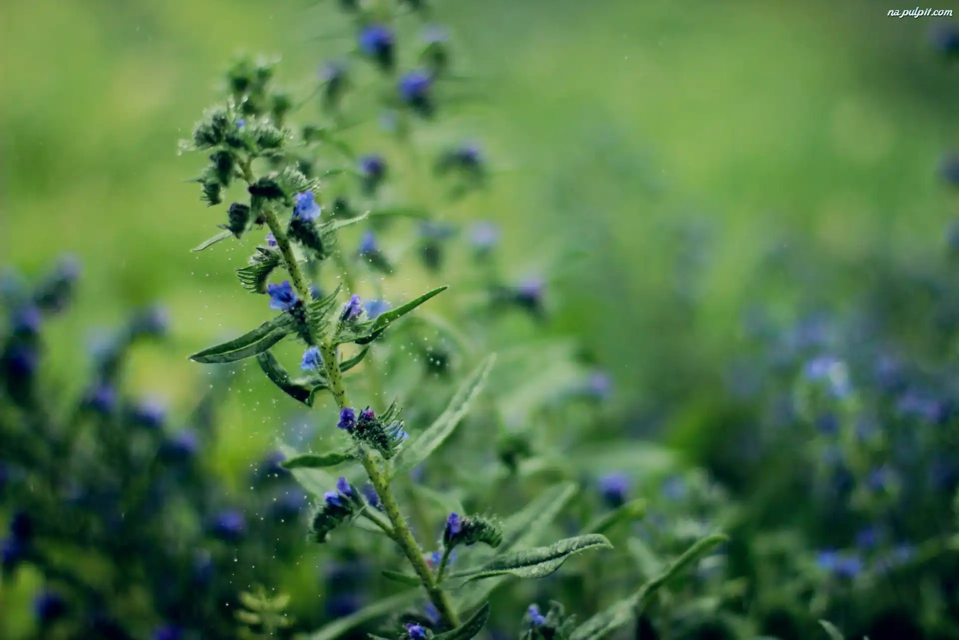 Deszcz, Ciemnoniebieskie, Kwiaty