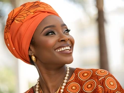 Pomarańczowy, Ciemnoskóra, Kobieta, Turban, Uśmiech