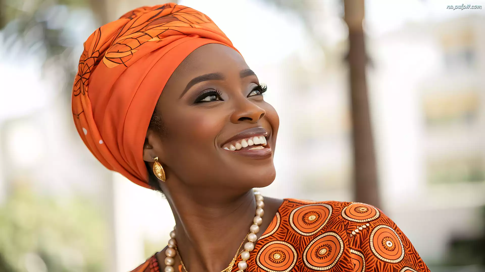 Pomarańczowy, Ciemnoskóra, Kobieta, Turban, Uśmiech Na Pulpit