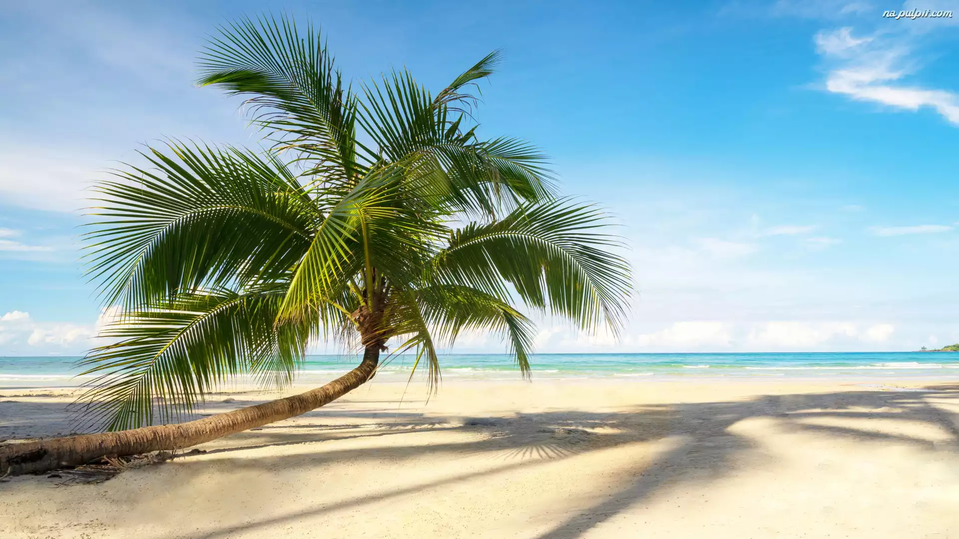 Morze, Plaża, Palma, Cień Na Pulpit