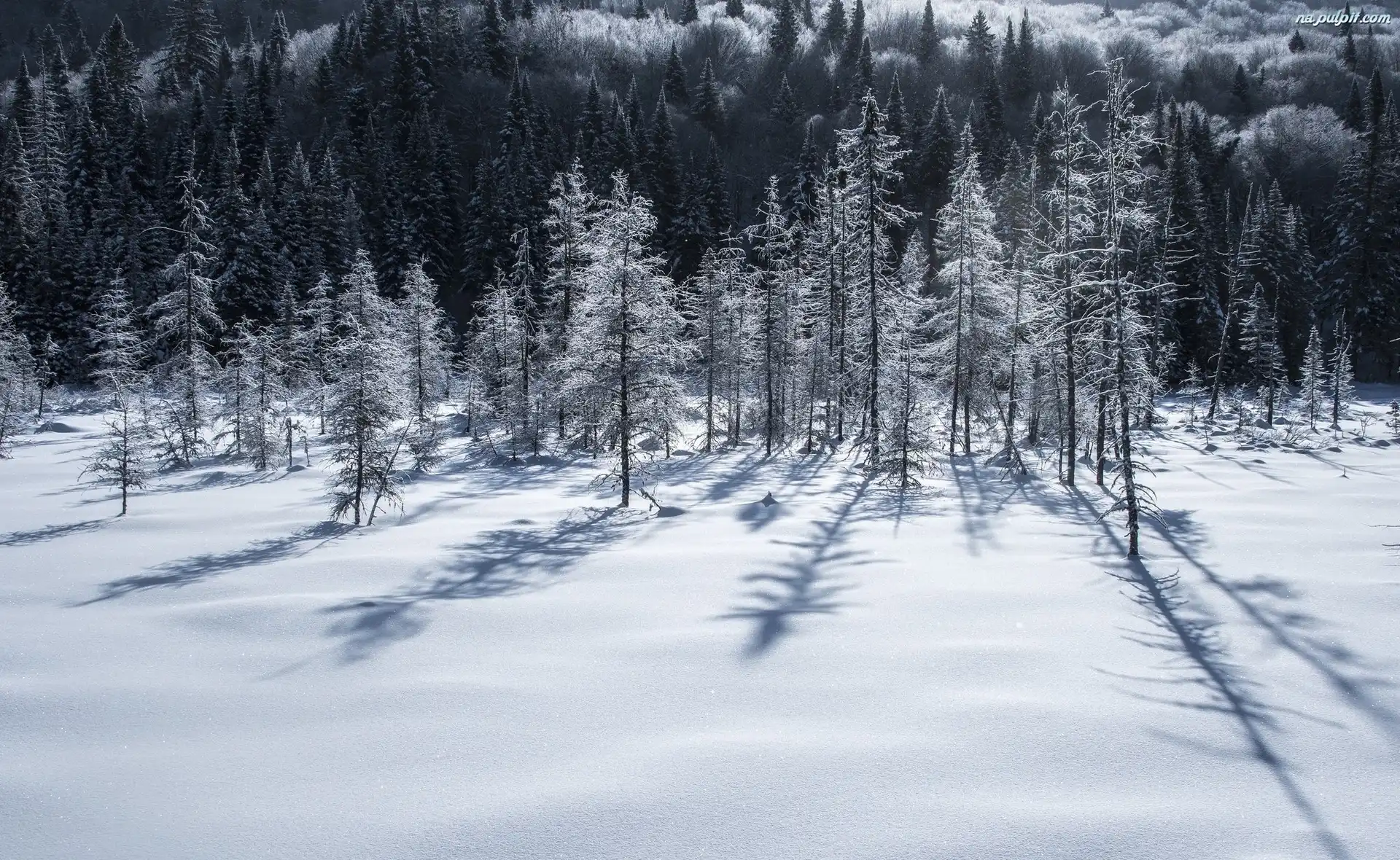 Cień, Las, Drzewa, Zima, Padający Na Pulpit