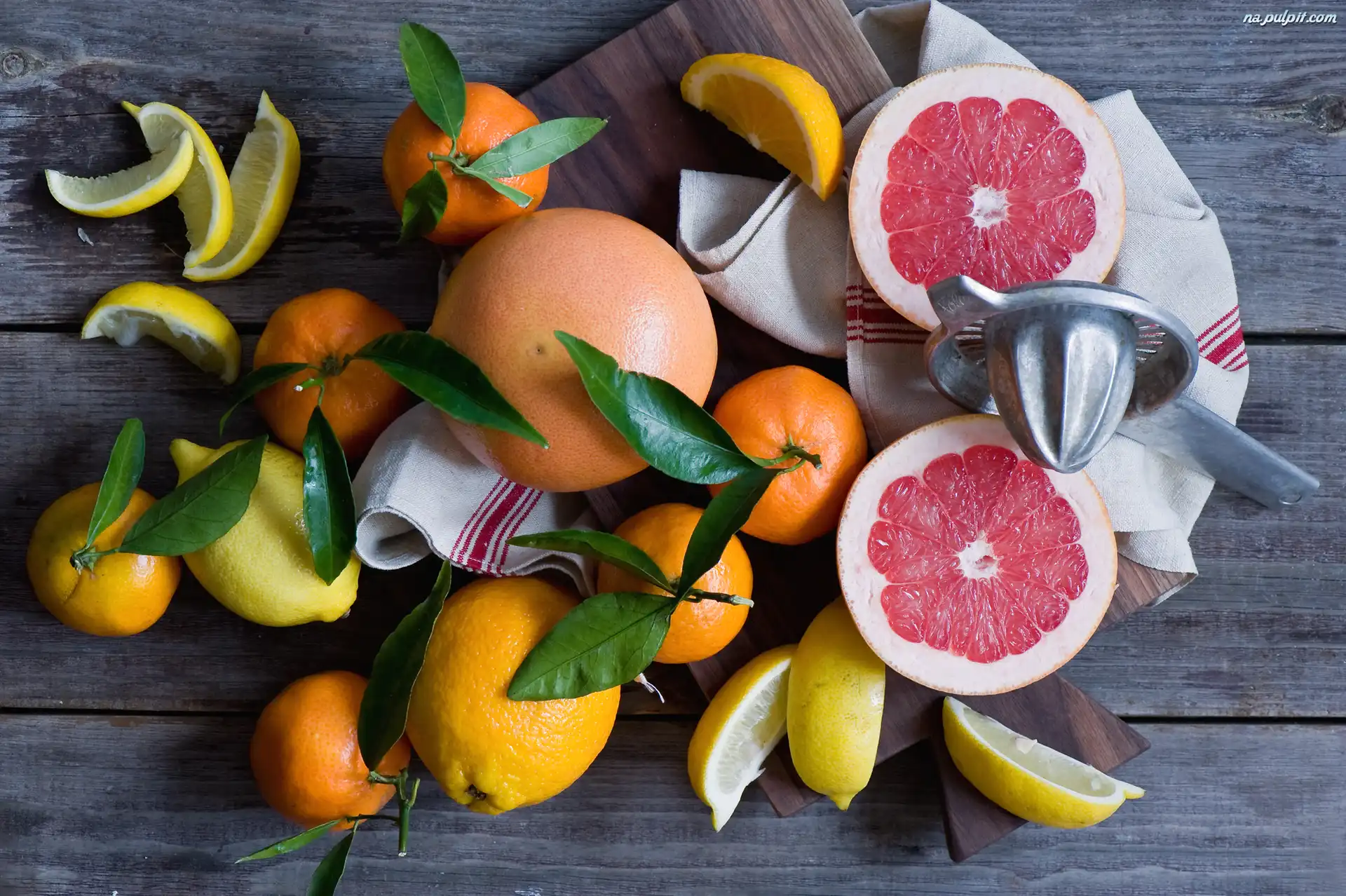 Owoce, Mandarynki, Åšciereczki, Cytrusy, Grejpfruty, Deski, Wyciskarka, Deska, Cytryny, Kompozycja, Listki Na Pulpit |