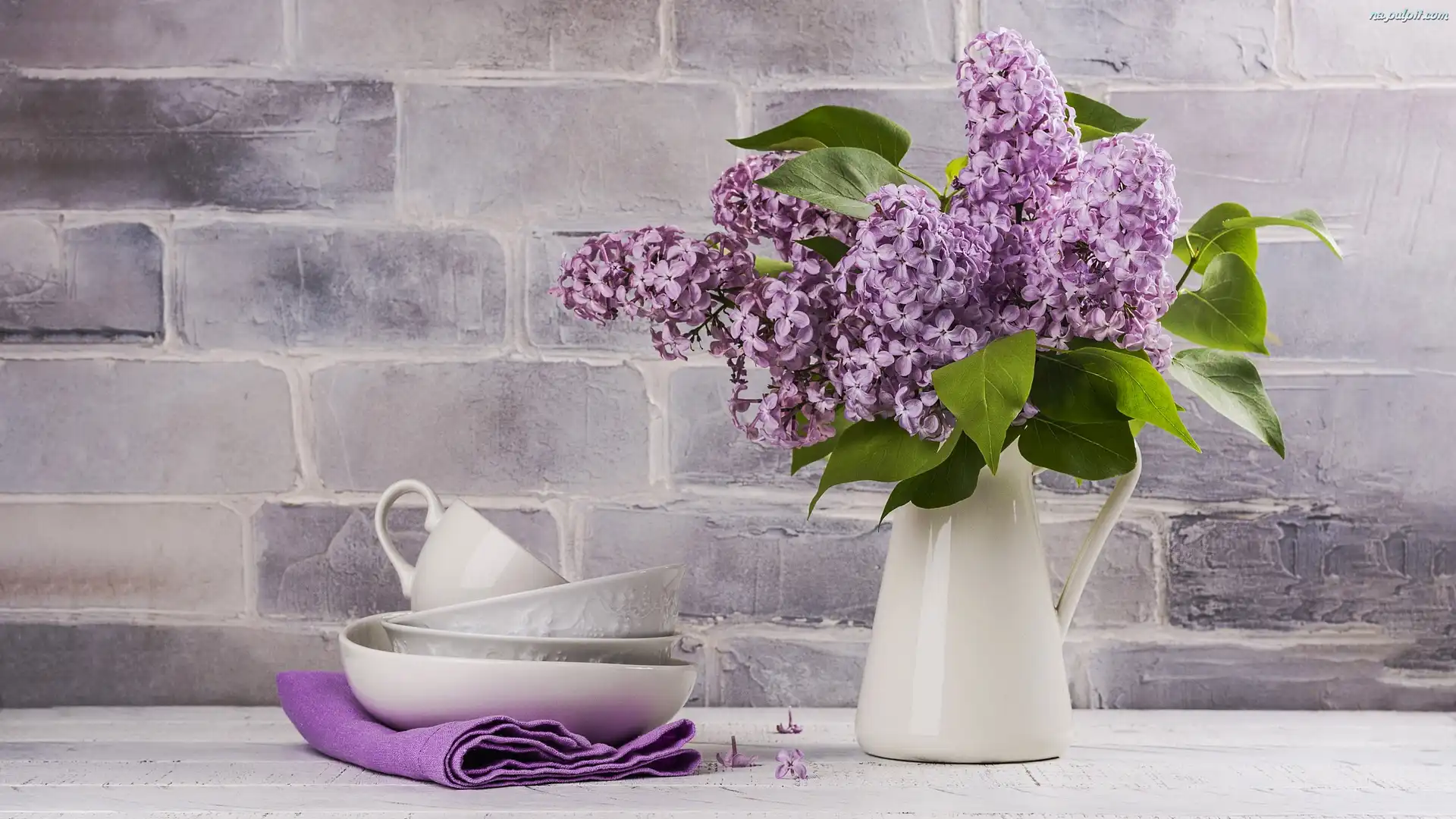 Åšcierka, Dzbanek, Naczynia, Bez, Fioletowy, Kompozycja, Bukiet Na Pulpit