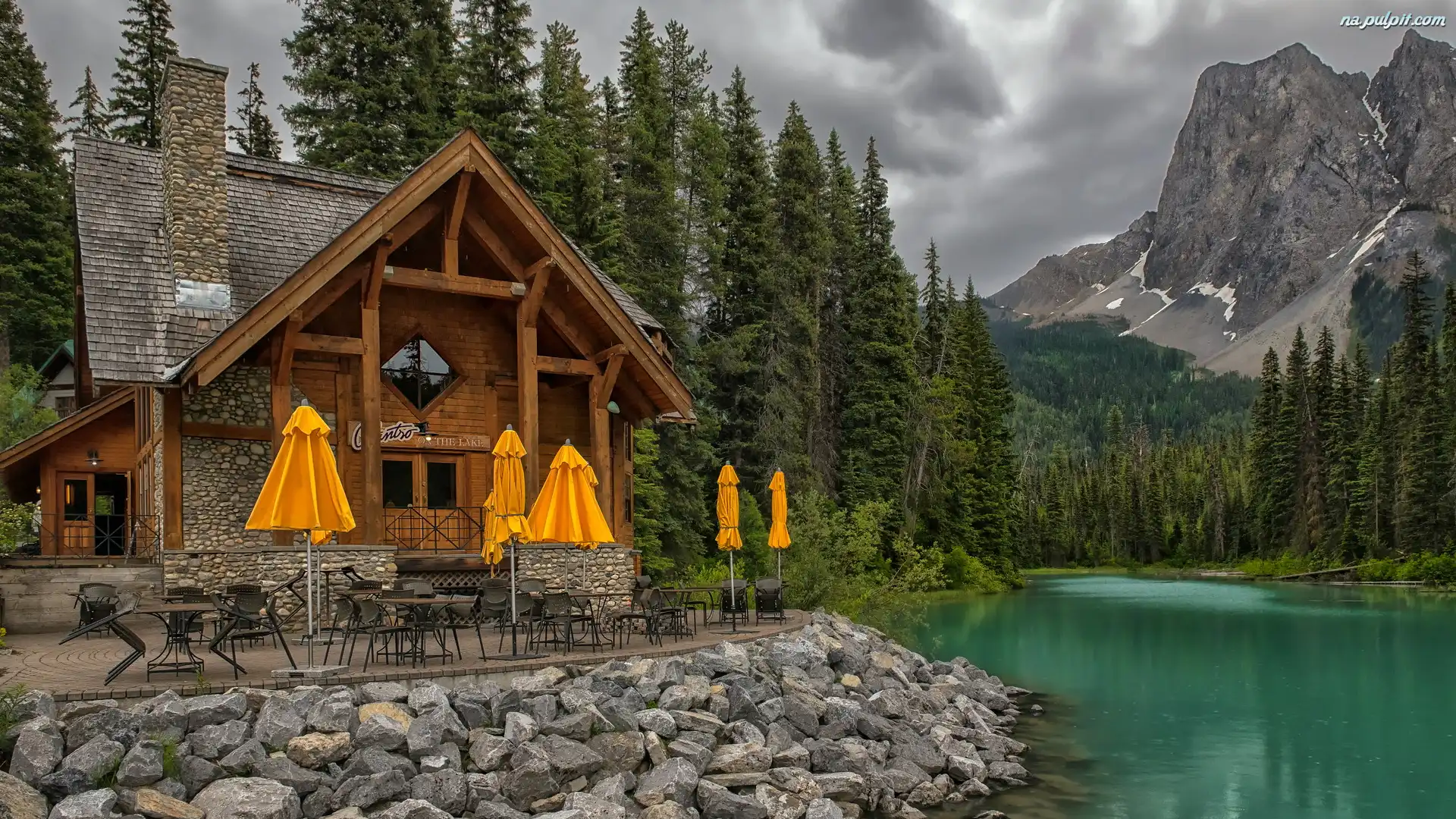 Cilantro on the Lake, Emerald Lake, Parasole, Dom, Park Narodowy Yoho, Kolumbia Brytyjska, Kanada, Jezioro, Restauracja, Góry Na Pulpit |