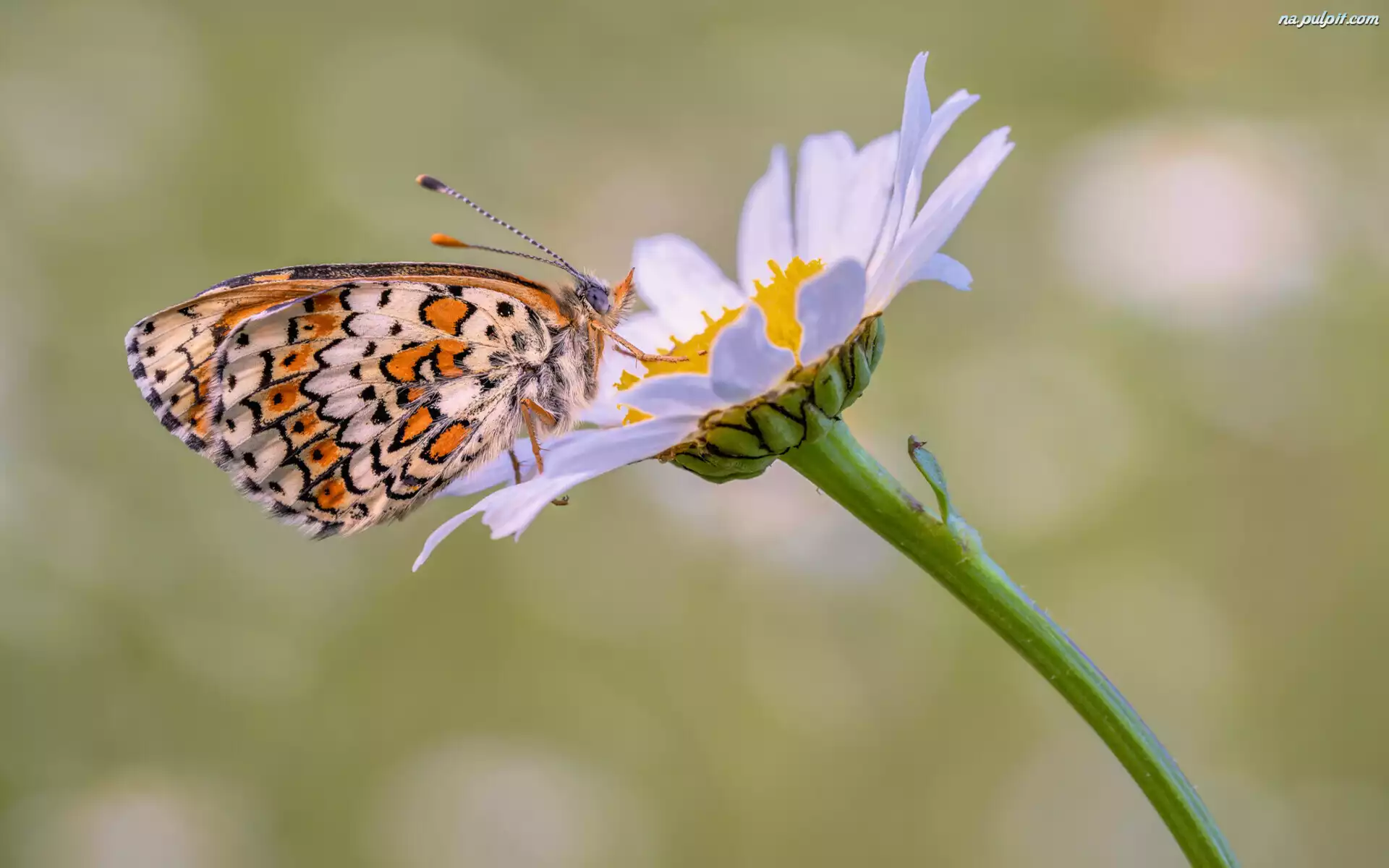 Margerytka, Motyl, Przeplatka cinksia, Roślina, Kwiat Na Pulpit