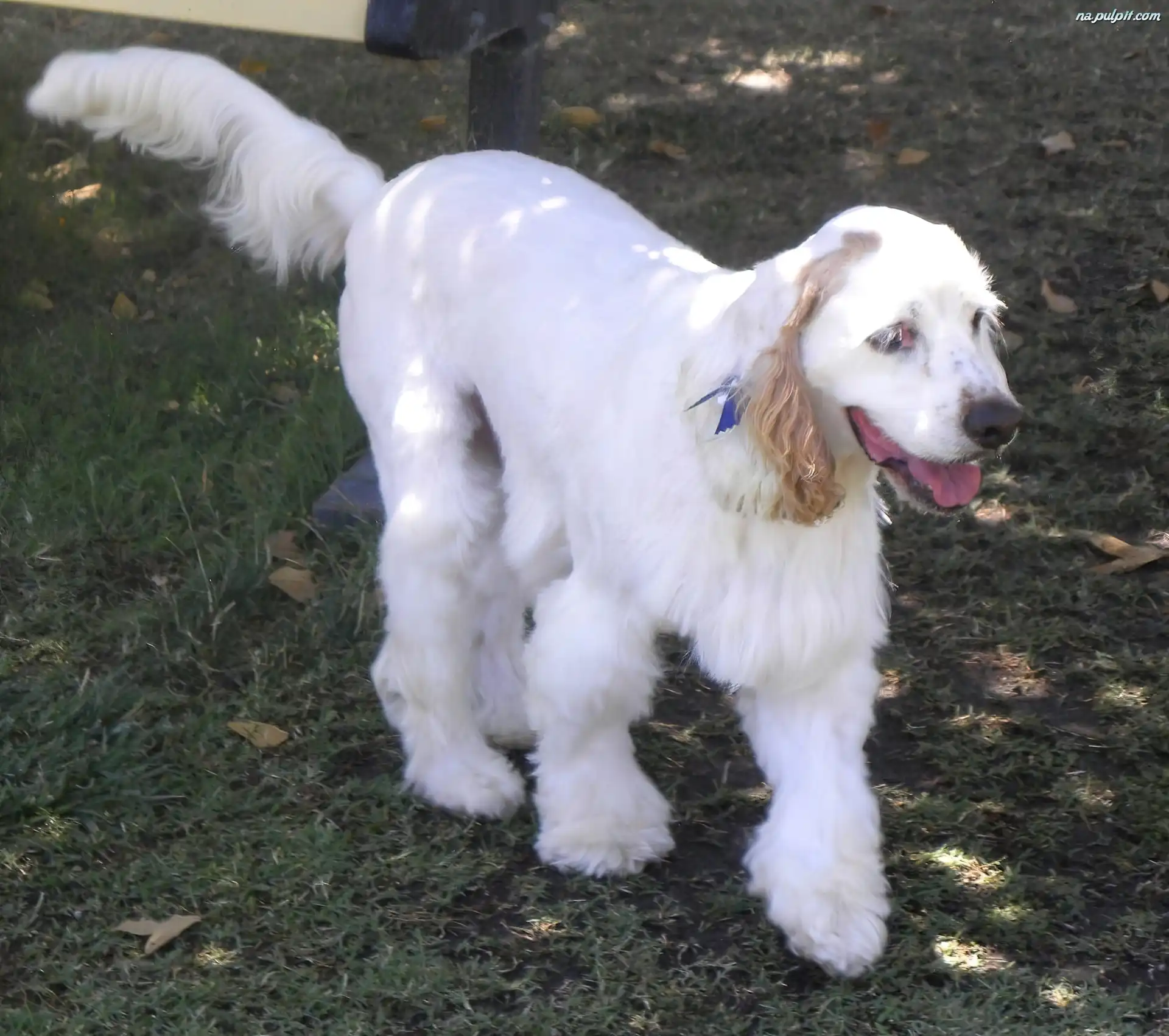 trawa, dorosły, Clumber spaniel Clumber spaniel