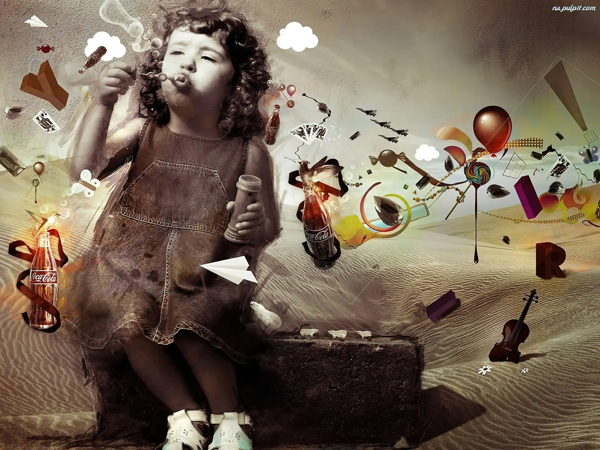 Cola, Mydlane, Bańki, Dziewczynka, Walizka Na Pulpit