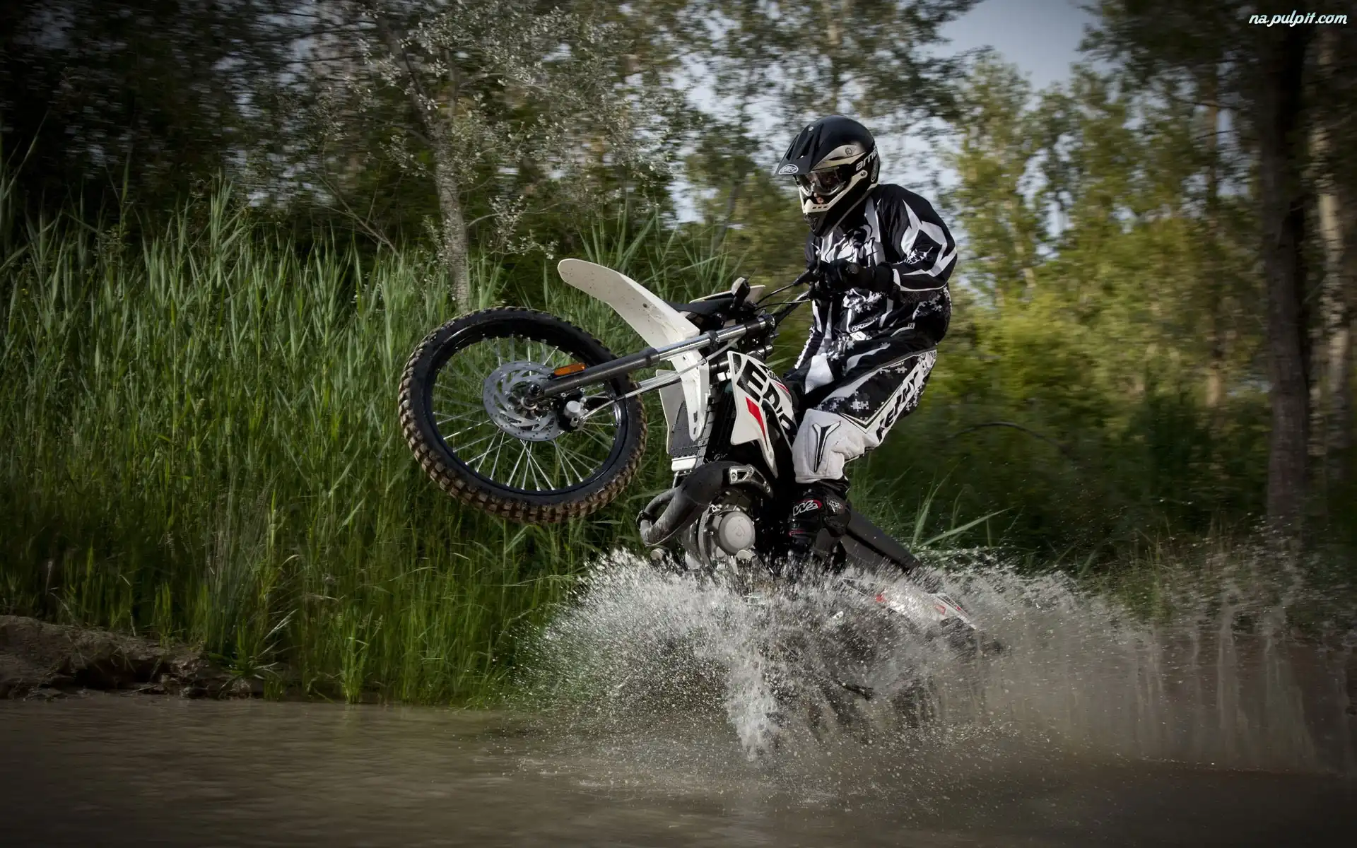 Cross, Trzciny, Woda, Motocyklista