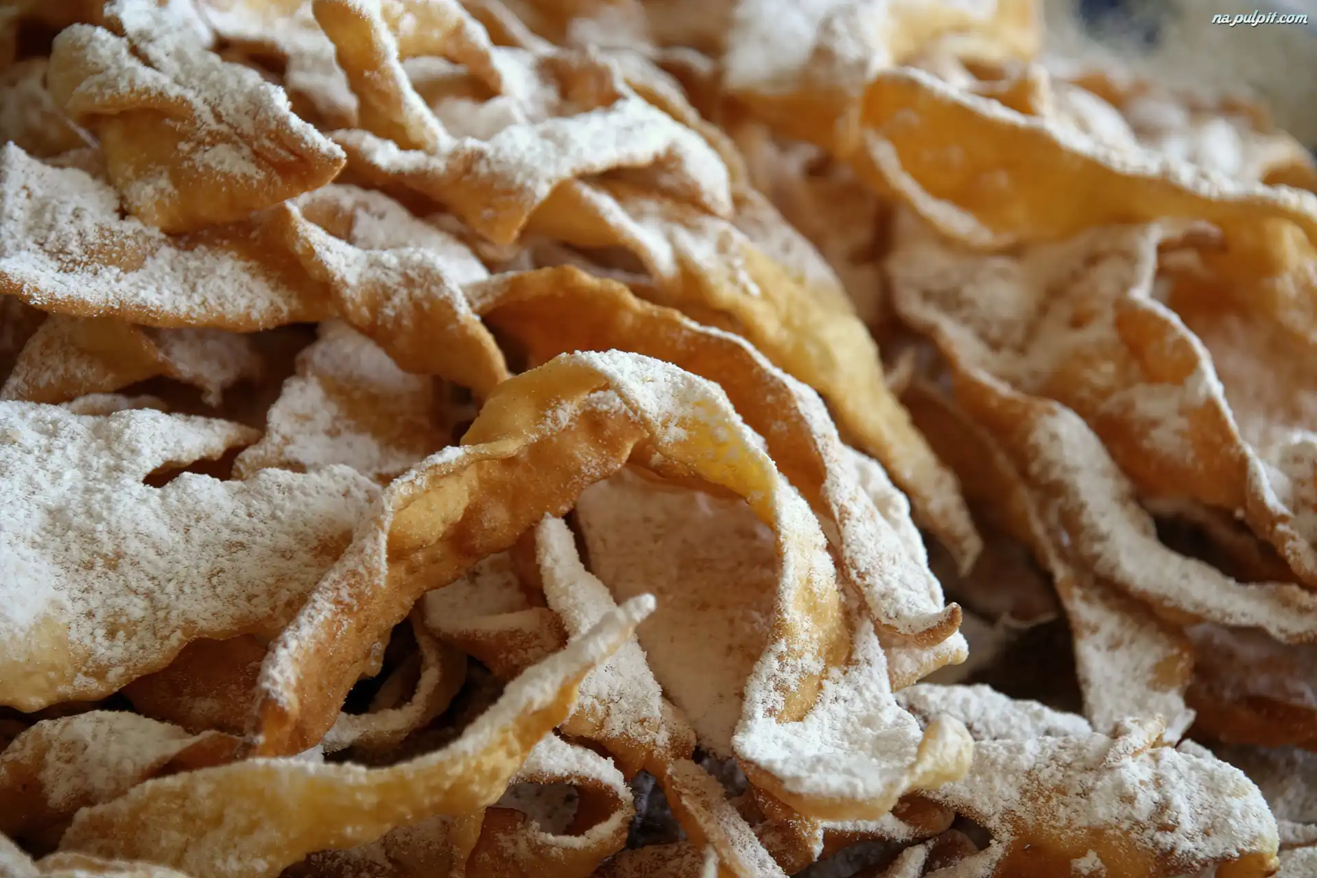 chrusty Talerz, Faworki, Czarny faworki faworki, chrusty faworki, cukier puder