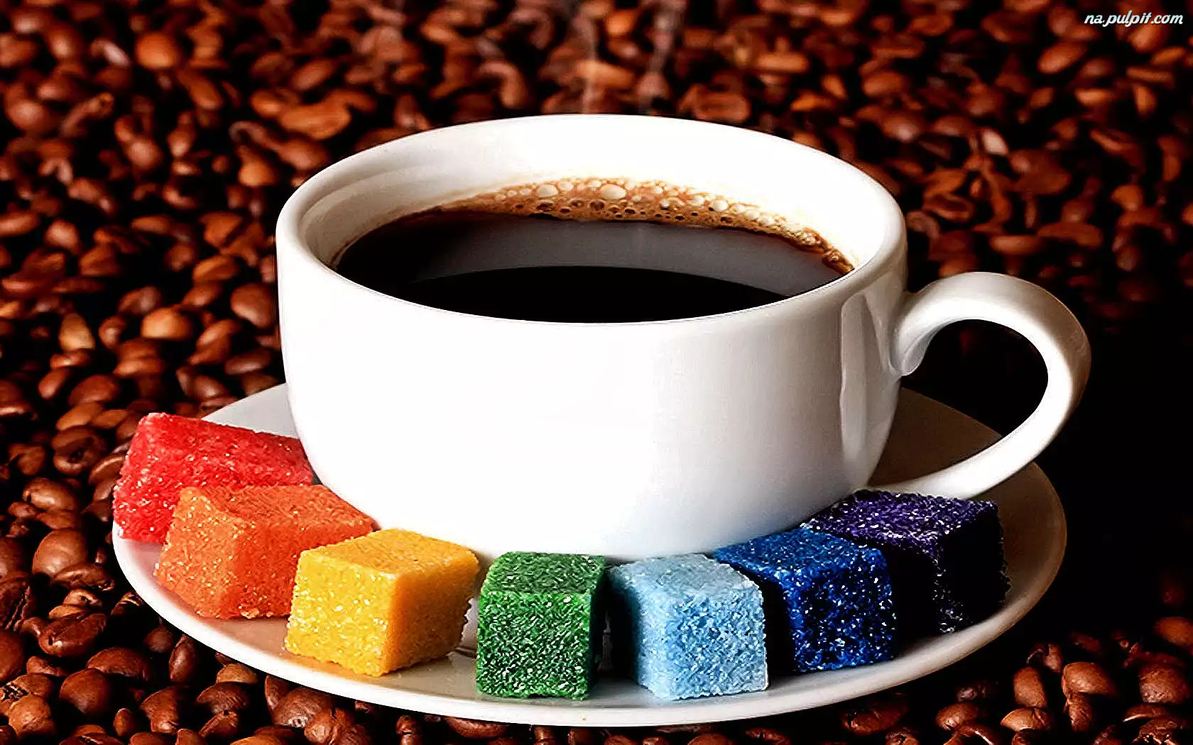 Cukru, Kolorowe, Kawy, Filiżanka, Kostki Na Pulpit
