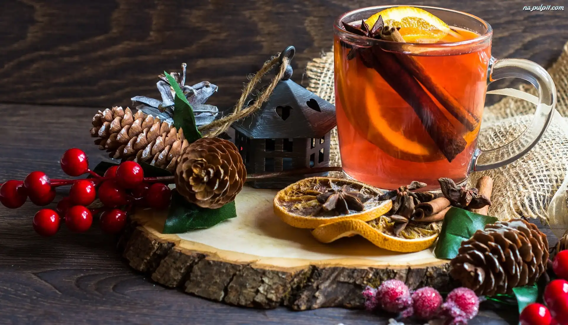 Latarenka, Kubek, Herbata, Plasterki, Szyszki, Deska, Cytryny, Kompozycja, Cynamon Na Pulpit