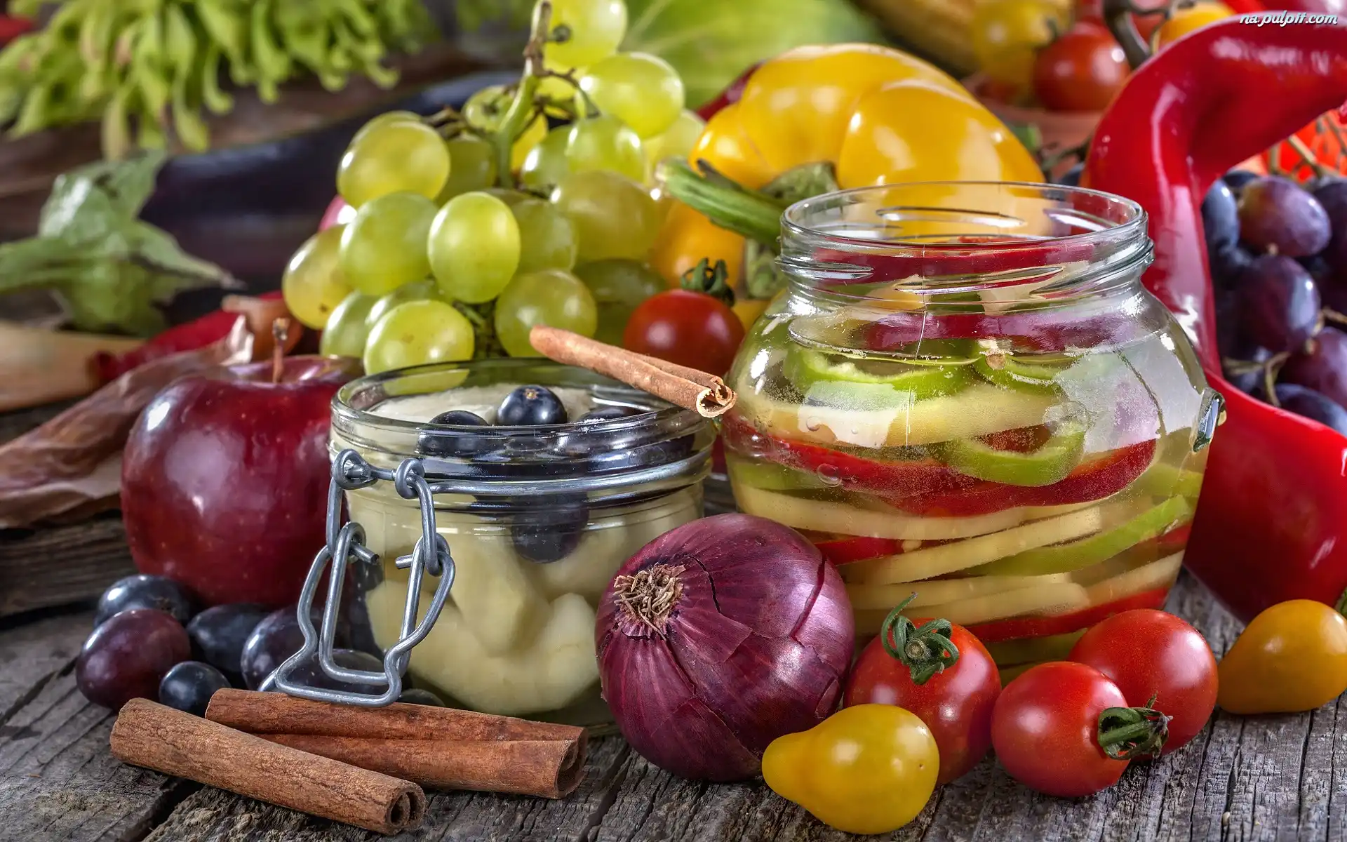 Słoiki, Cebula, Cynamon, Warzywa, Papryka, Winogrono, Laski, Jabłko, Pomidory, Przetwory, Owoce Na Pulpit |