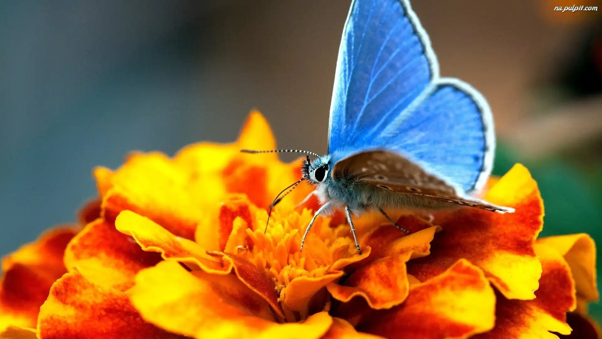 Cynia, Modraszek ikar, Motyl, Niebieski, Kwiat Na Pulpit