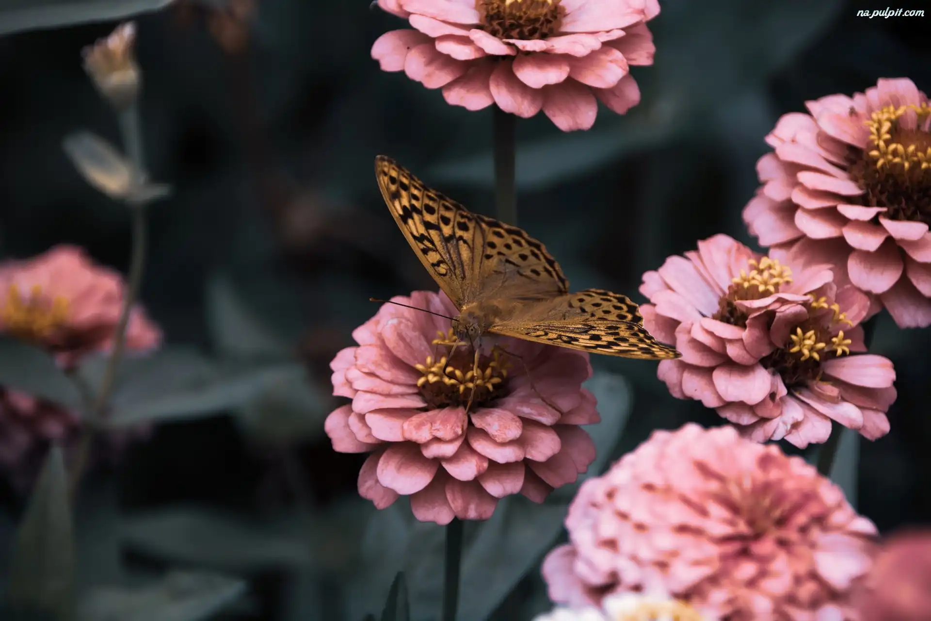 Cynie, Różowe, Dostojka malinowiec, Motyl, Kwiaty Na Pulpit