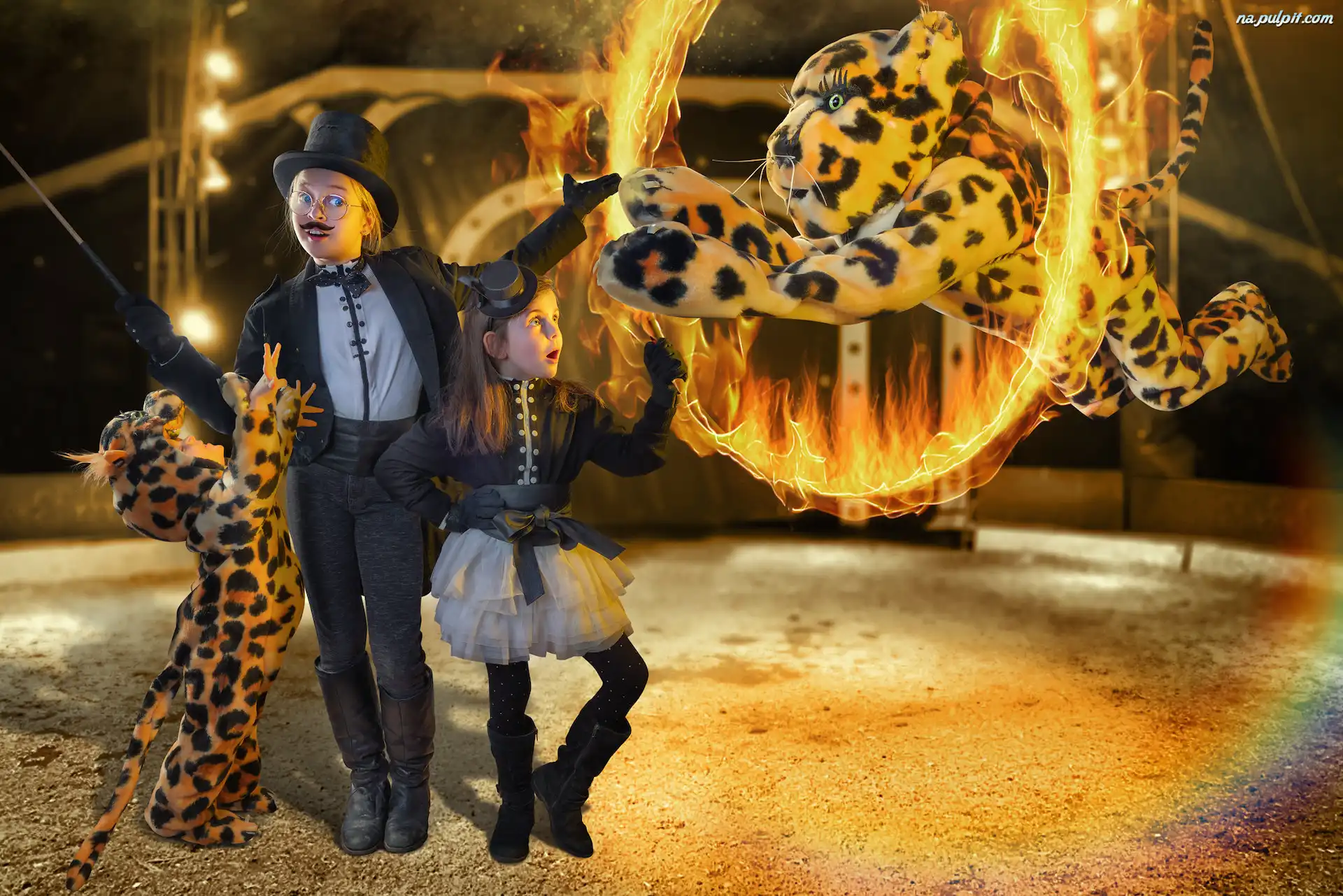 Cyrk, Płonąca, Obręcz, Arena, Dzieci, Tygrys Na Pulpit