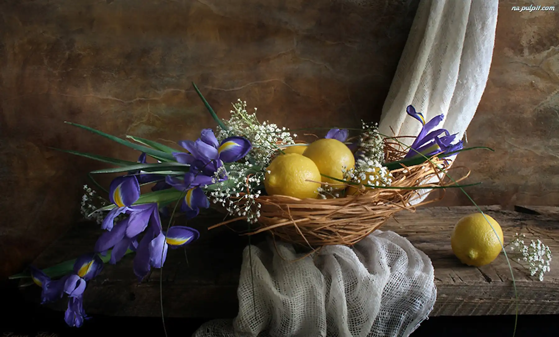 Cytryny, Kwiaty, Kompozycja, Irysy Na Pulpit