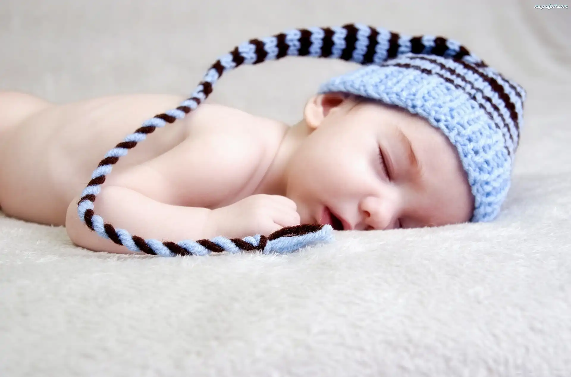 Czapeczka, Dziecko, ÅšpiÄ…ce, Niebieska Na Pulpit