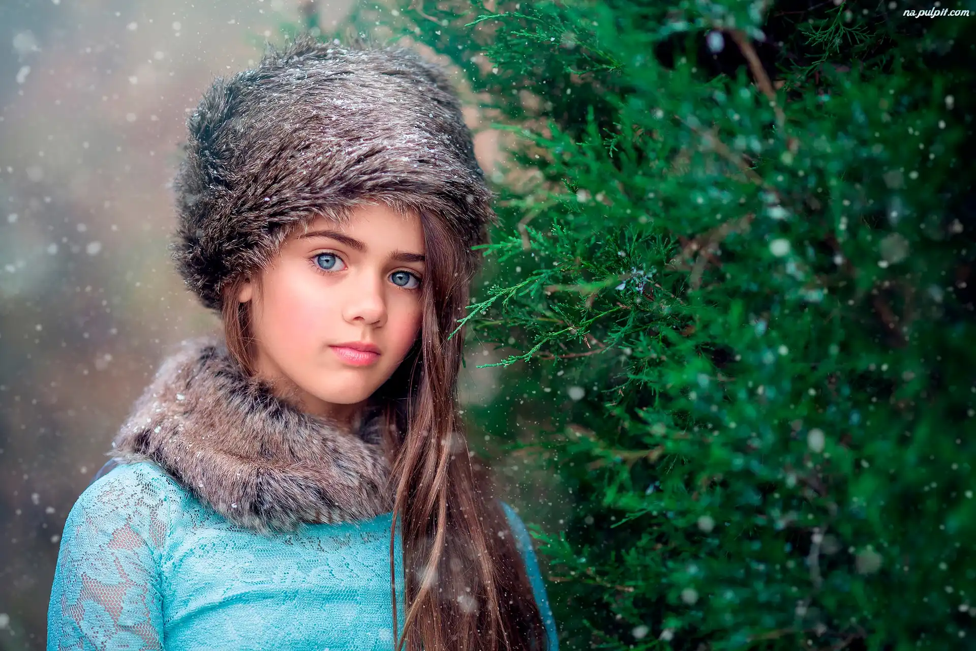Czapka, Åšnieg, Dziewczynka, Krzew Na Pulpit