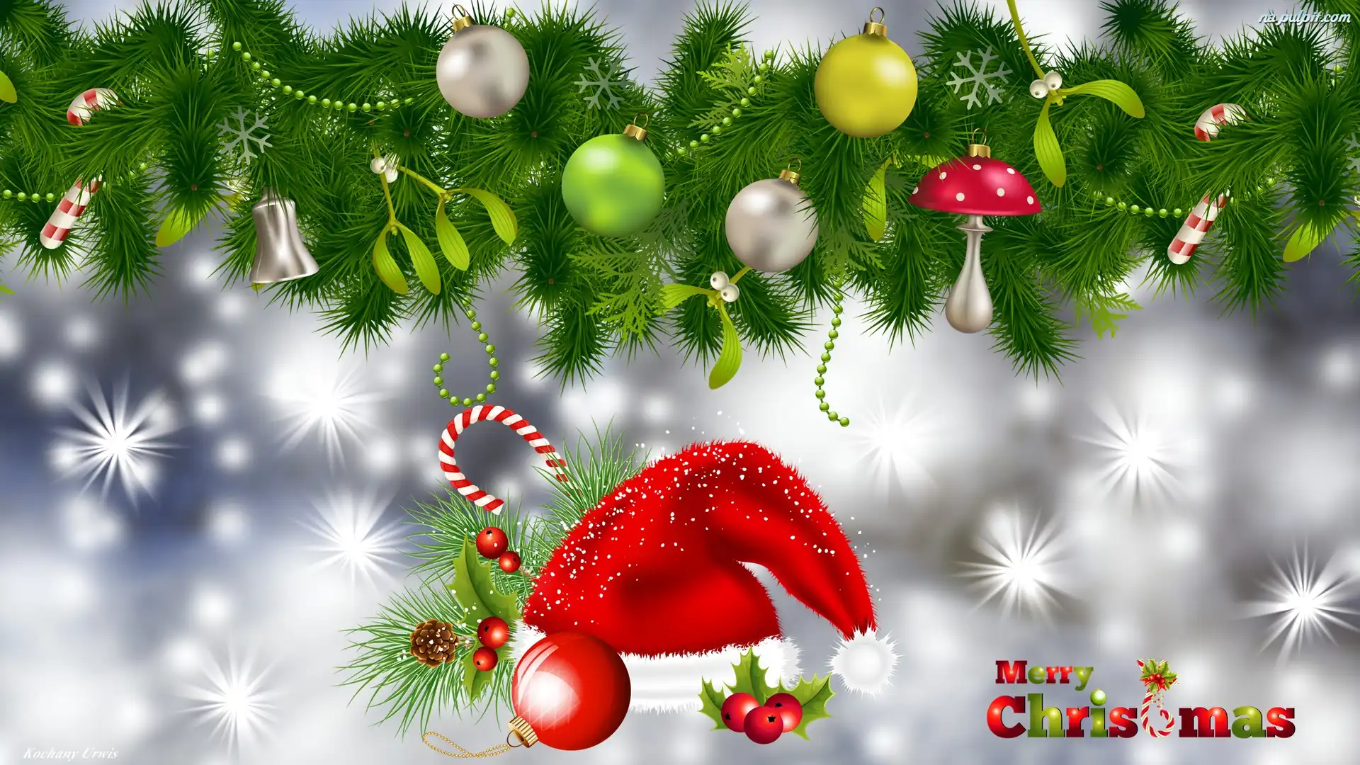 Mikołaja, Świąteczna, Kompozycja, Gałązki, Grafika 2D, Bombki, Boże Narodzenie, Czapka Na Pulpit |
