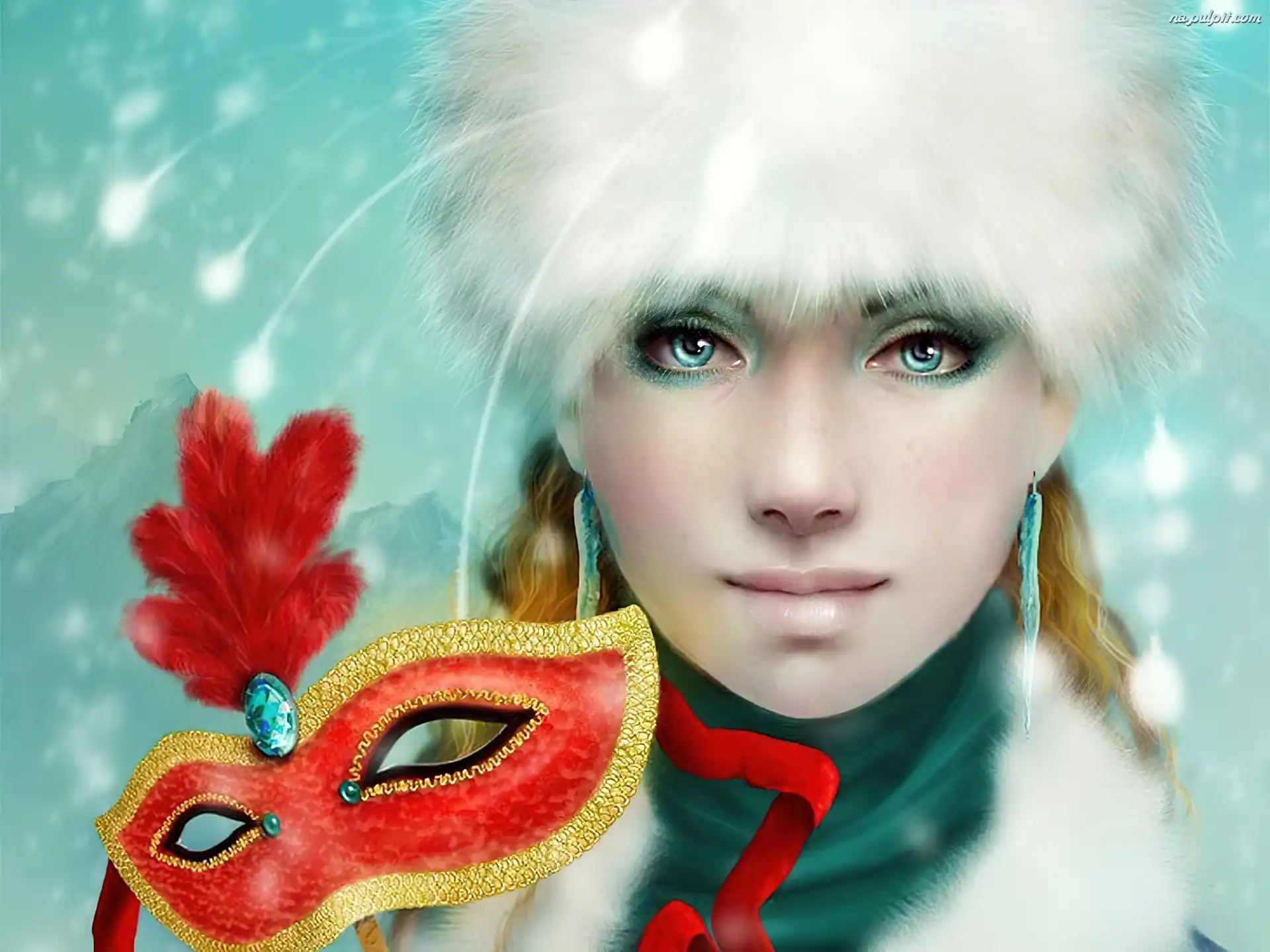 Czapka, Maska, Kobieta, Kolczyki