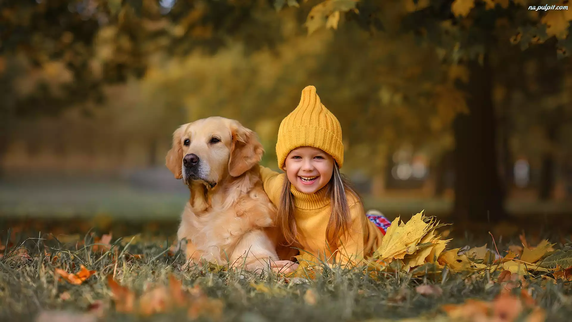 Golden retriever, Dziewczyna, Czapka, Łąka, Pies Na Pulpit