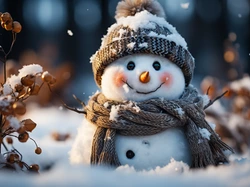 Szalik, Bałwan, Uśmiech, Zima, Rośliny, Suche, Śnieg, Czapka