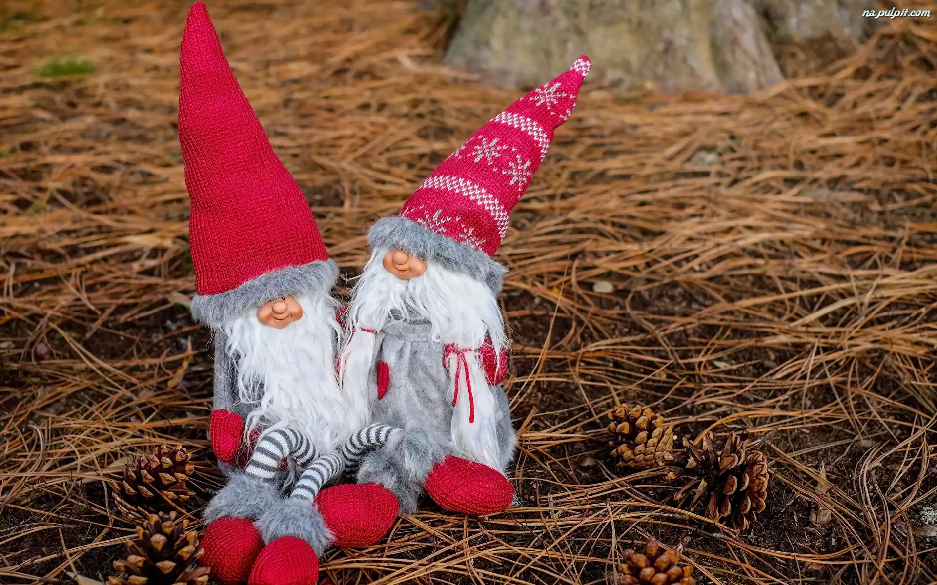 Dwa, Skrzaty, Dzianina, Czapki Na Pulpit