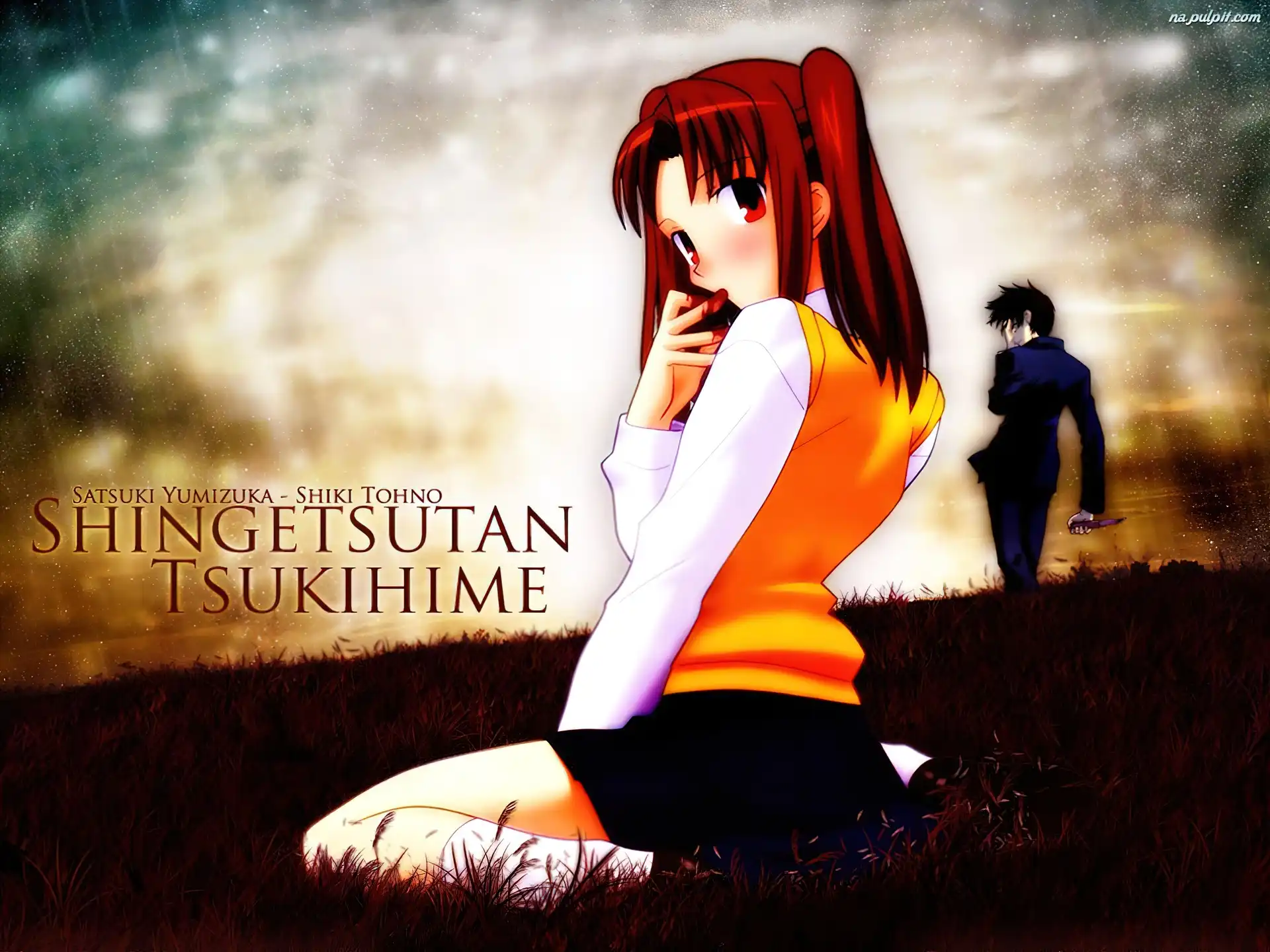 czarna spódniczka, Shingetsutan Tsukihime, czerwone włosy Na Pulpit
