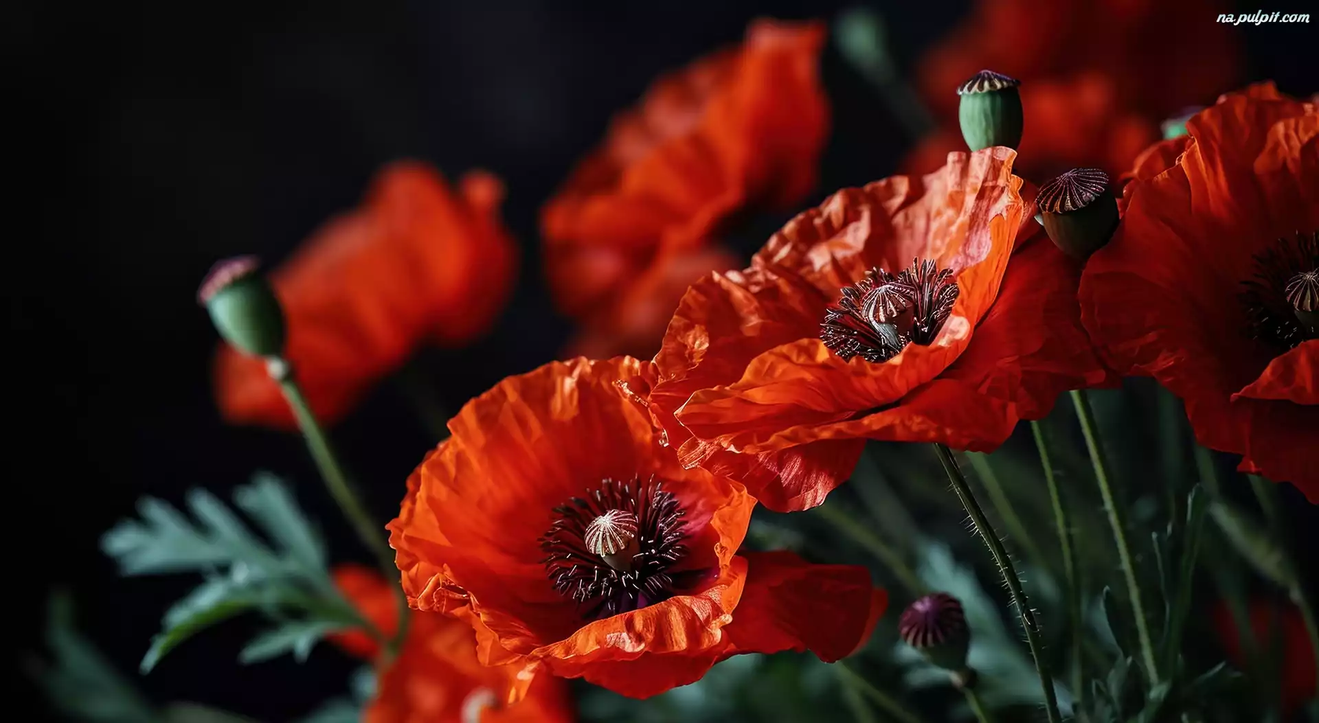 Tło, Maki, Kwiaty, Czarne, Czerwone, Grafika Na Pulpit