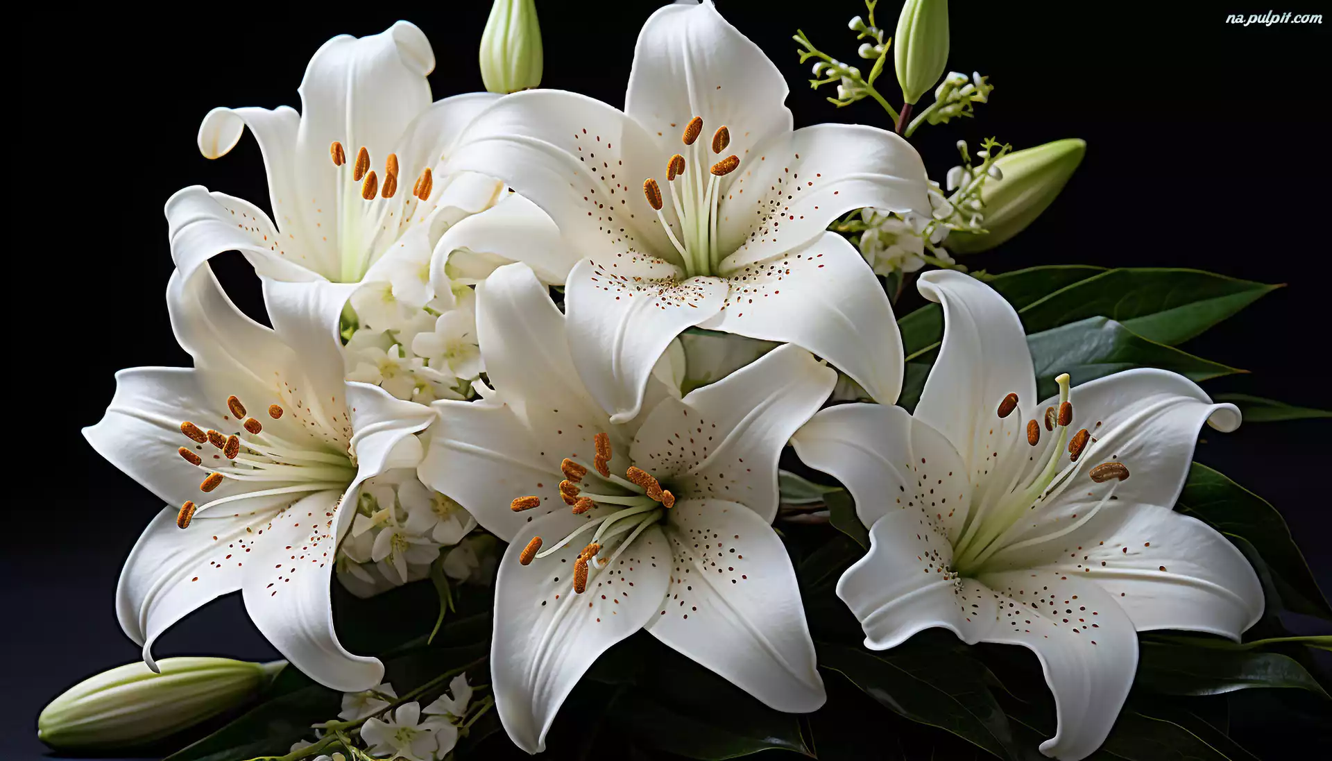 Grafika, Kwiaty, Białe, Czarne tło, Lilie Na Pulpit