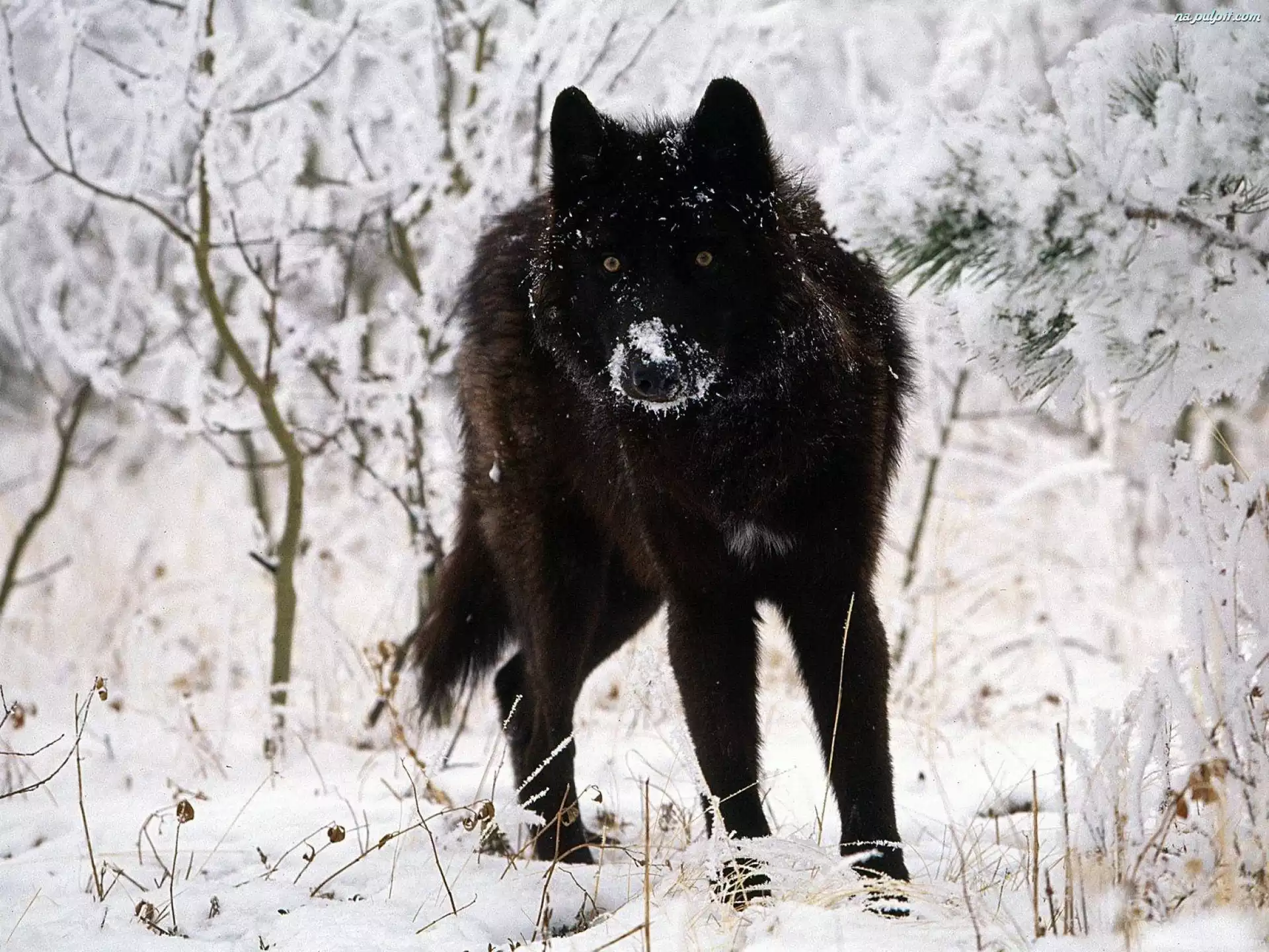 śnieg, Czarny, Wilk Na Pulpit